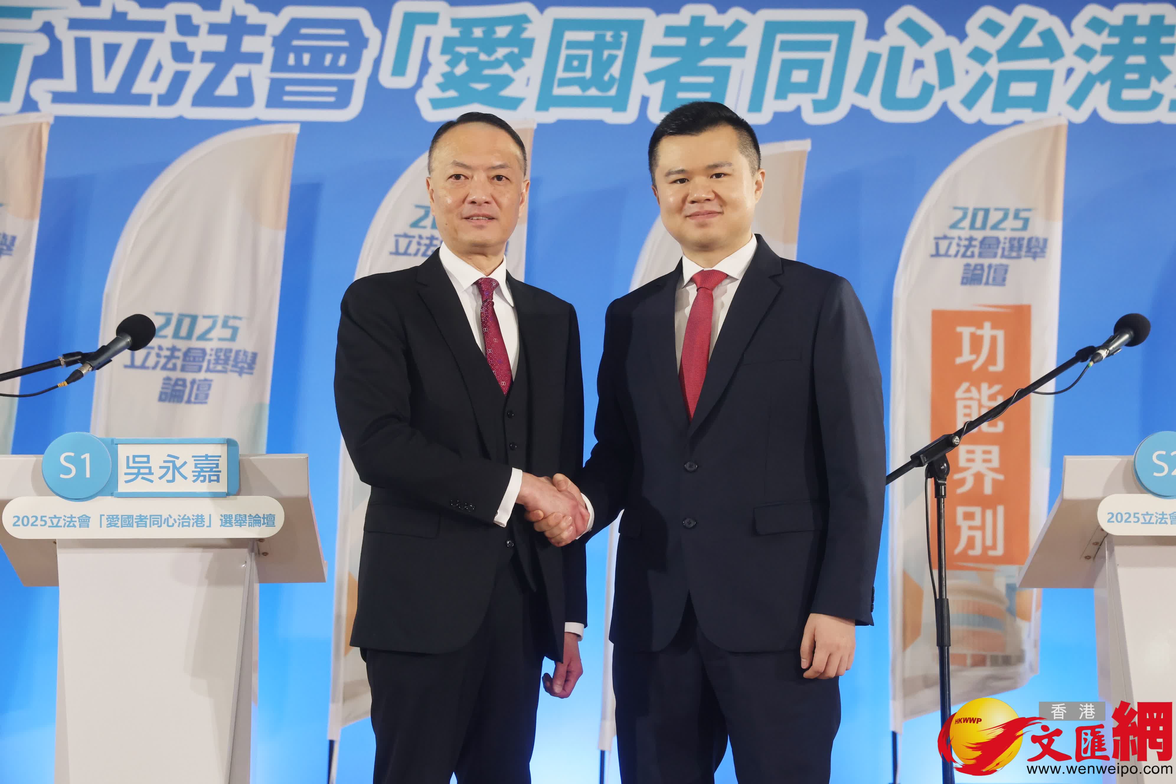 (香港文匯報記者 洪澤楷)特區政府本月11日起舉辦共39場2025年立法會「愛國者同心治港」選舉論壇。工業界(第二)功能組別論壇今日(23日)上午在荔枝角政府合署禮堂舉行,S1號候選人吳永嘉與S2號候選人王偉樑出席。提問環節主要聚焦電競產業發展、青年參政議政,以及粵港澳地區之間的規則與機制銜接。