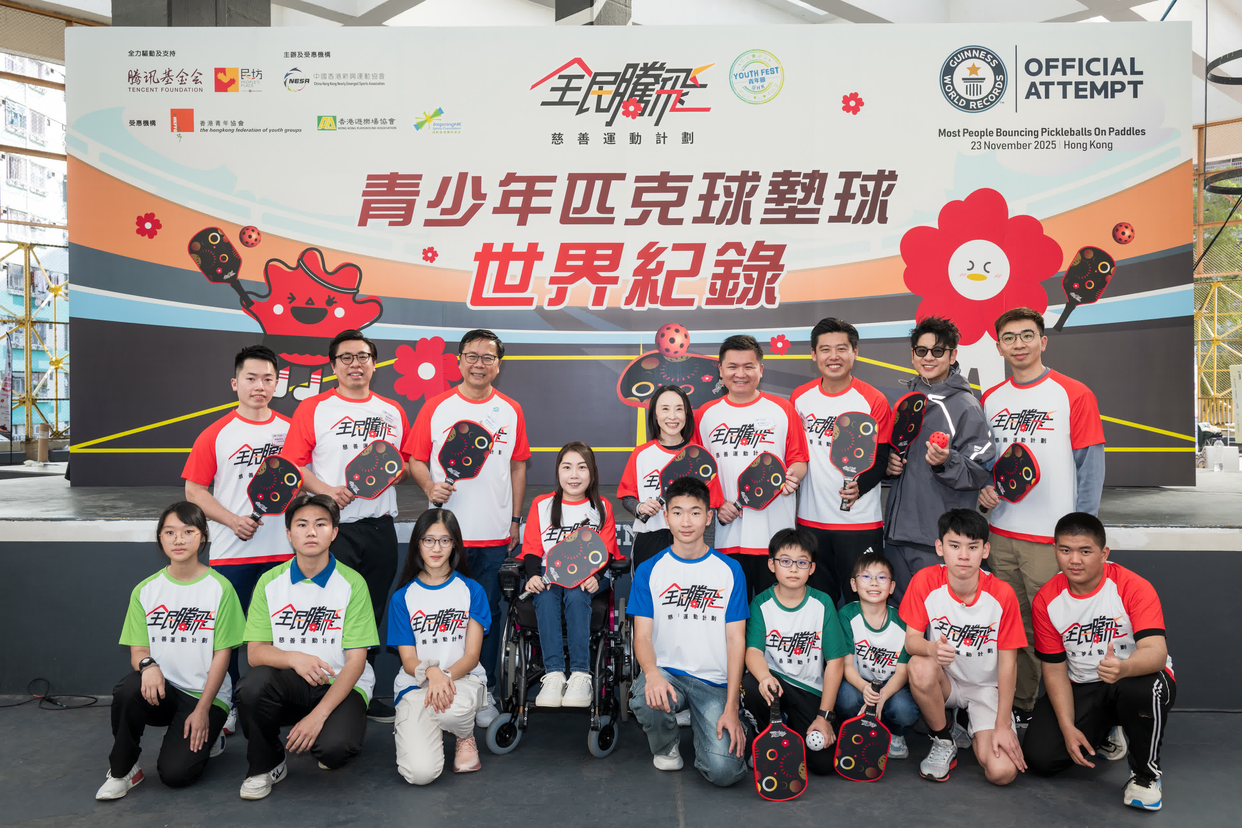 香港文匯報訊 騰訊公益慈善基金會(騰訊基金會)與基滙資本民坊共同驅動《全民騰飛》慈善運動計劃2025,今日攜手中國香港新興運動協會,在九龍灣啟業運動場圓滿舉行「最多人同時在匹克球拍上墊球」挑戰。活動吸引全港共24個青年團體及學校報名,超過700名青少年聚首一堂,進行匹克球墊球挑戰,成功創下健力士世界紀錄,寫下歷史新創舉。本次活動亦屬2025年「青年節@HK」伙伴活動,體現以運動連結社區,並展現香港青年的活力與挑戰自我的精神。