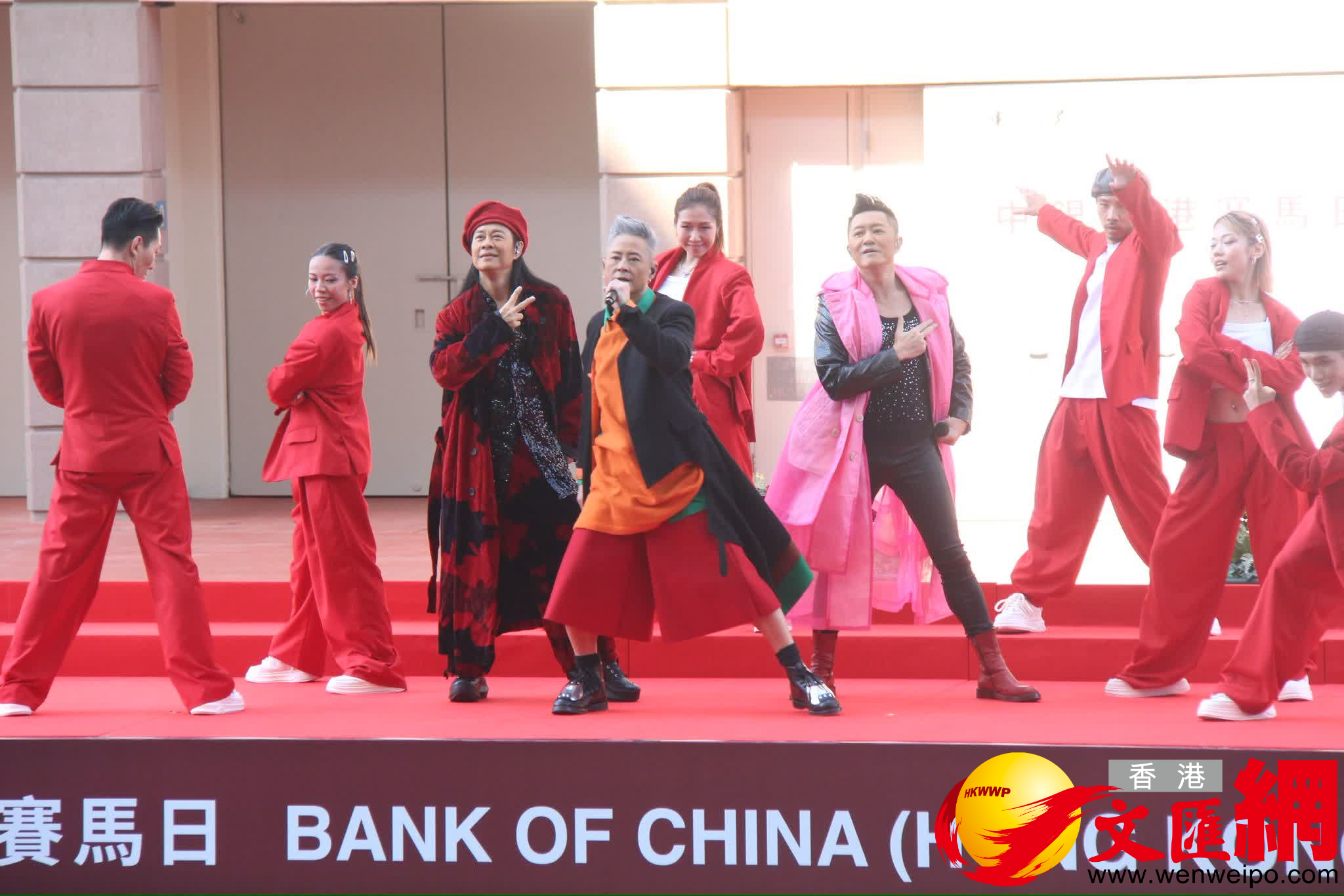 香港文匯報訊(記者 達里)草蜢、陳慧嫻與陳凱詠今日為賽馬日活動擔任表演嘉賓,而陳豪與唐詩詠則提供咖啡和麵包供賓客享用。草蜢與陳凱詠在開賽前於沙圈載歌載舞,大受馬迷歡迎。