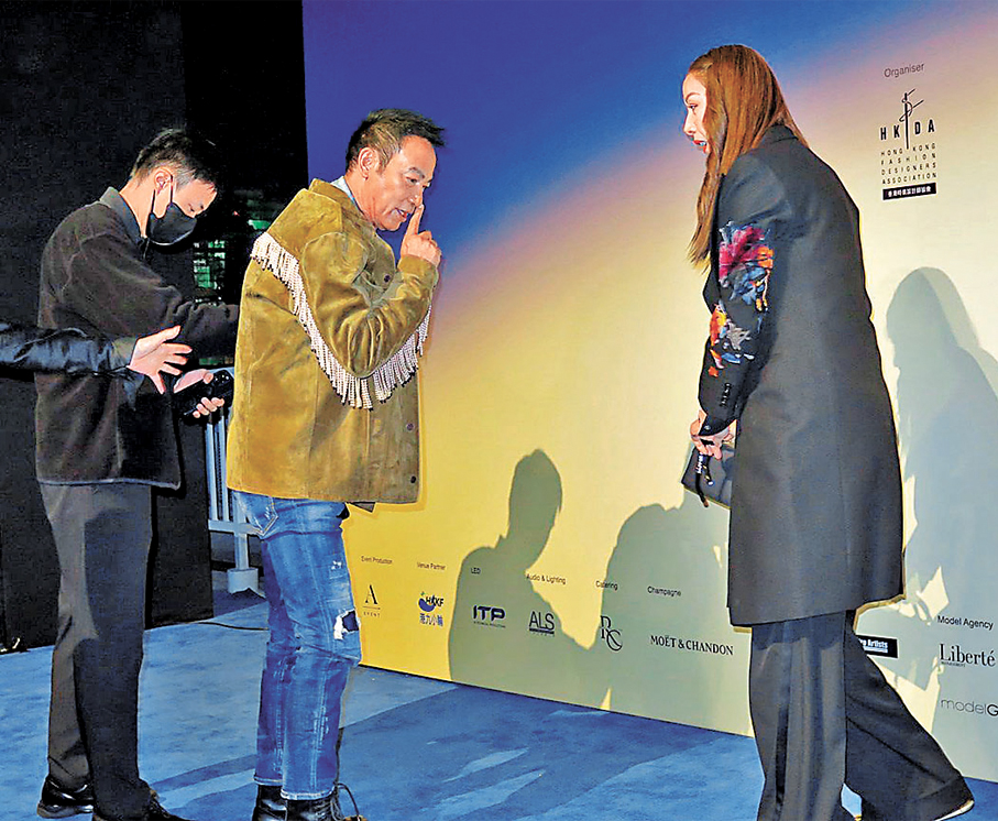 香港文匯報訊(記者 阿祖)任達華(華哥)與琦琦以嘉賓身份前晚出席「VIRTUOSE:高級訂製的藝術2025」匯演,與活動策展人及項目總監張潔雯合照時,琦琦先在布景板前站定,而華哥緊隨其後步入時,卻不慎被地毯絆倒,但他身手敏捷,一個側身卸力,再翻身一周跪於地上,飛脫眼鏡,嚇親旁邊受訪的夏文汐。華哥隨後自行站起身,走近夏文汐並笑着舉起「V」字手勢示意自己無恙,夏文汐也才展露笑容。
