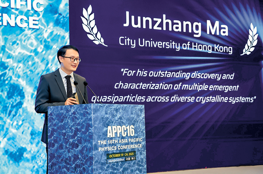 香港文匯報訊 香港城市大學物理系副教授馬均章,近日榮獲由亞太物理學會聯合會(AAPPS)及亞太理論物理中心(APCTP)共同設立的2025年度「楊振寧獎」,是本年度唯一來自香港的獲獎者。是次獎項表彰他在多種晶體系統中發現並表徵多種新興準粒子(quasi-particles)的突破性成就,認為其開創性研究成果,有助深化人類對量子材料的理解。
