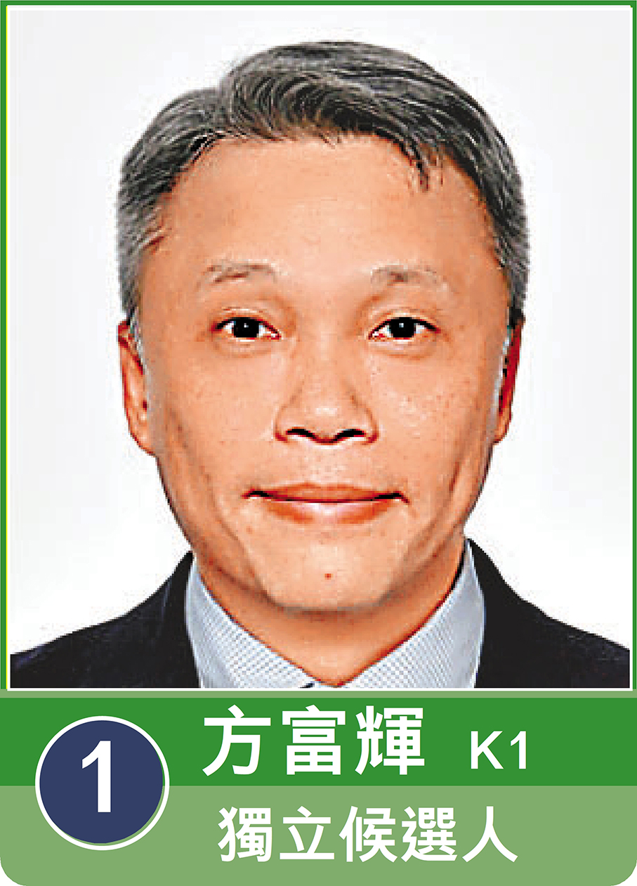 K1號候選人方富輝從前線社工做到社福機構管理層,再投身社工教育培育新血,將社工事業視為終身志業。他以「說好社工的故事」為首次參選立法會的口號,期望為同工提供更多選擇,鼓勵業界積極投票,讓社會看見社工的價值與貢獻,為社福界開創更具活力的發展局面。