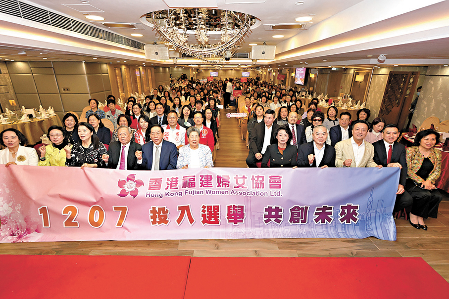李然、香港福建婦女協會創會主席陳聰聰、香港福建社團聯會主席施清流、香港福建社團聯會榮譽主席吳良好、中國和平統一促進會香港總會會長姚志勝、香港福建社團聯會榮譽主席吳換炎、香港福建婦女協會永遠榮譽主席蔡黃玲玲等分別上台致辭,呼籲大家運用巾幗之力,帶動身邊的人一齊在12月7日當天,選出有擔當、有能力的立法會議員,共同為香港的未來貢獻一份力量。昨日現場,大家齊聲呼喊:「1207,投入選舉,共創未來!」