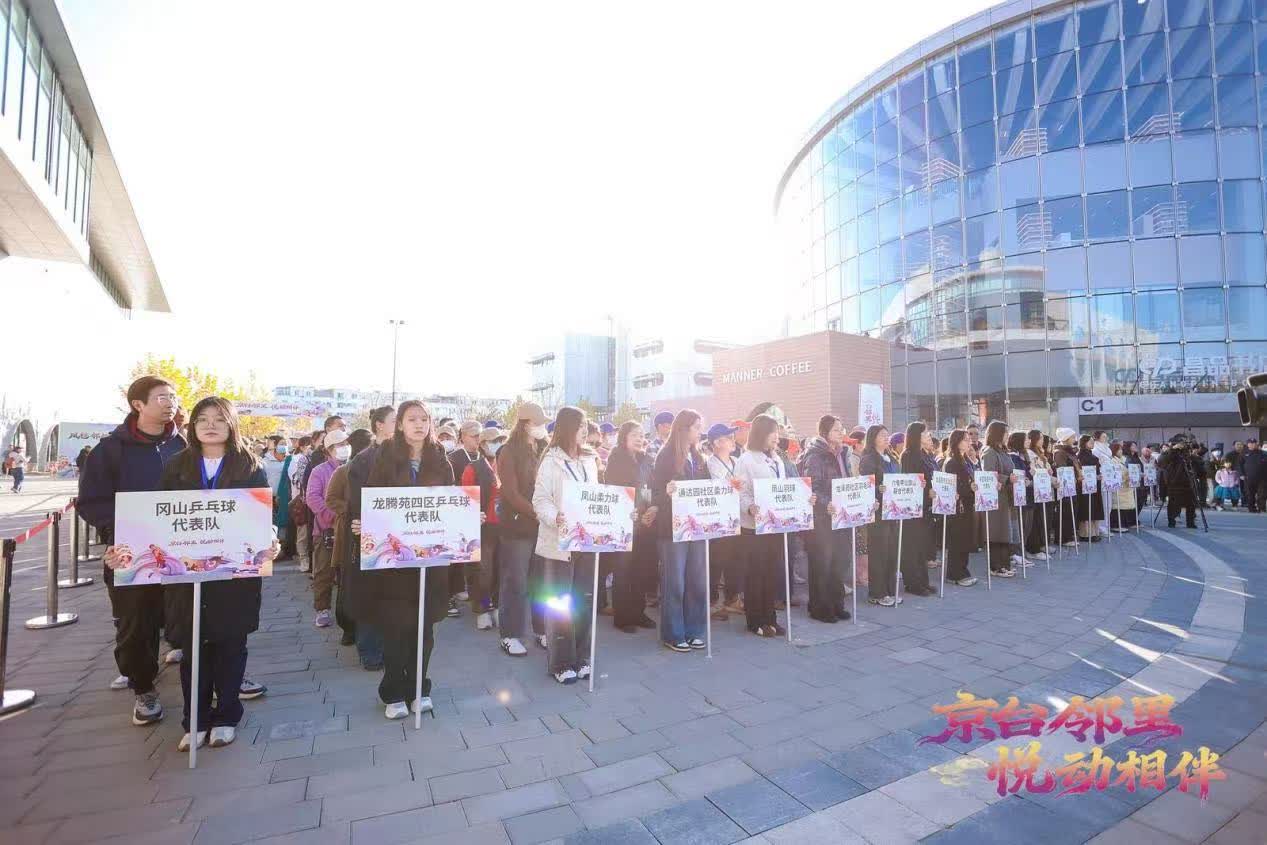啟動儀式上,京台兩岸文體隊伍聯袂入場,昌平社區的舞獅、空竹表演與台灣社區代表的活力風采相映成趣,共同拉開活動序幕。從「兩岸文蘊坊」的非遺體驗到「競躍海峽館」的體育交流,從趣味拼圖到傳統文化互動,活動環節豐富多樣。啟動儀式結束後,京台兩地代表一起拚接中國地圖,在非遺宋錦製作中共繪北京月季與台灣蝴蝶蘭,並進行3對3籃球友誼賽、乒乓球雙打、羽毛球交流賽等體育活動。