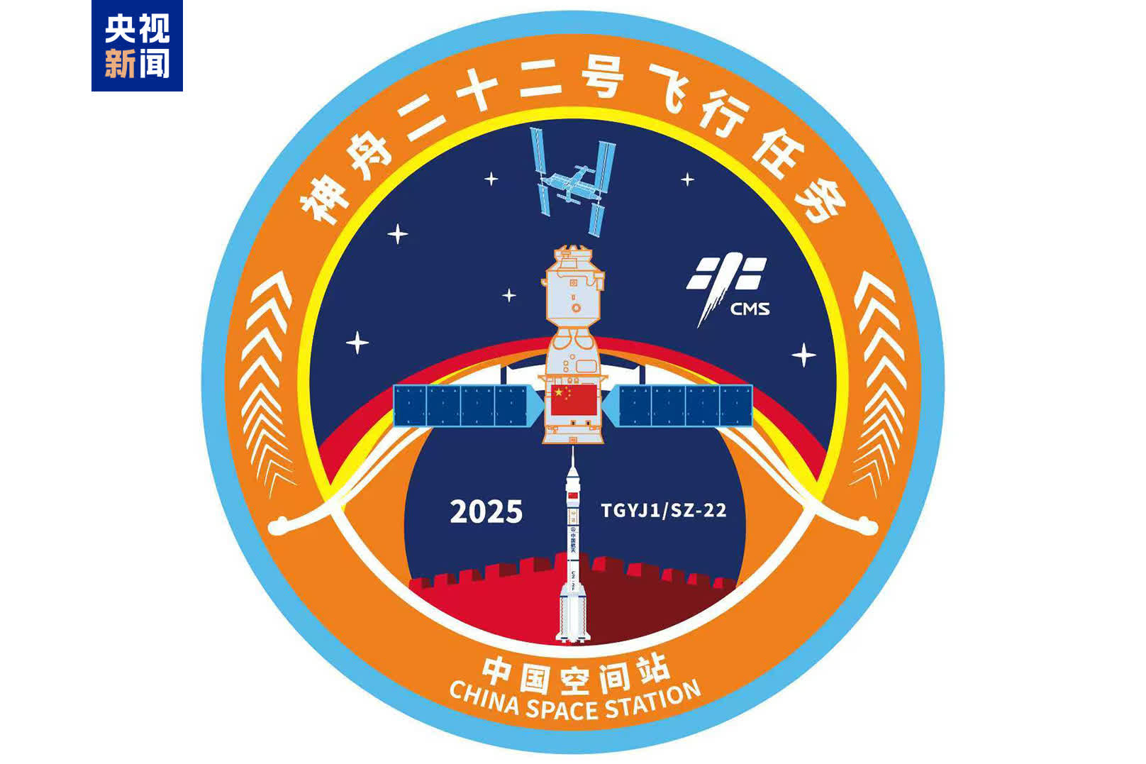 神舟二十二號飛船發射在即,中國載人航天工程辦公室正式發布本次飛行任務標識。