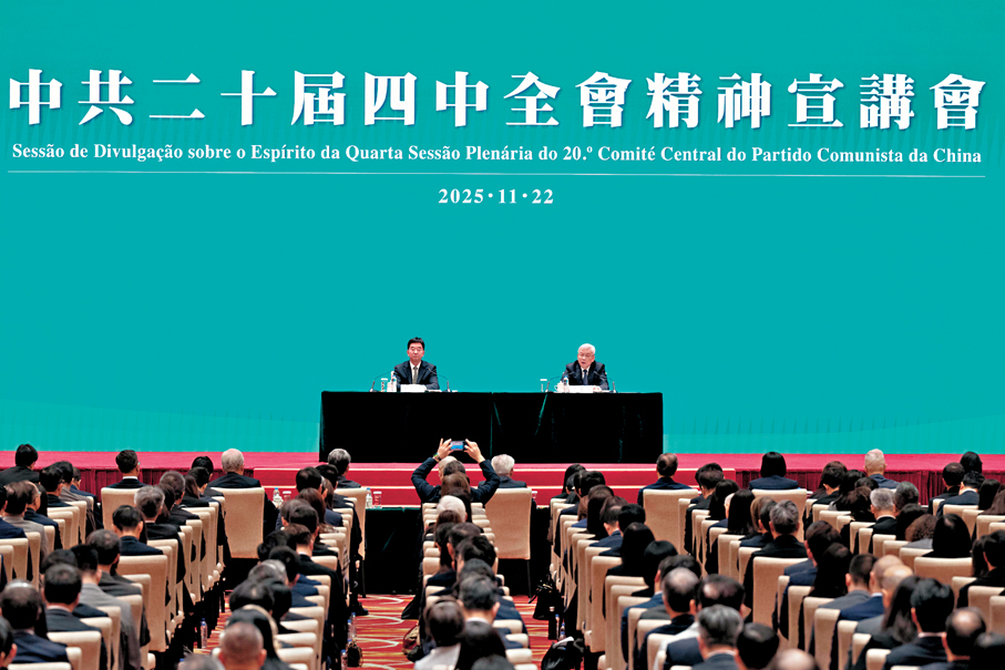 中央宣講團成員,中央財經委員會辦公室副主任、中央農村工作領導小組辦公室副主任祝衛東圍繞黨的二十屆四中全會的重大意義,「十五五」時期我國經濟社會發展形勢任務、指導方針和主要目標作出全面系統深入的解讀。他表示,要深刻領會「十五五」時期經濟社會發展的指導方針和主要目標,把握全會提出的「促進香港、澳門長期繁榮穩定」的豐富內涵和明確指向,做好澳門特區「三五」規劃與國家「十五五」規劃的對接,謀劃一批實招硬招,將「十五五」規劃建議提出的方向指引轉化為推動澳門經濟社會發展的務實舉措,不斷彰顯澳門「一中心、一平台、一基地」作用,推動澳門經濟適度多元發展。
