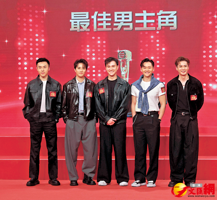 ●右起:羅子溢、張振朗、朱敏瀚、黃庭鋒和姚宏遠有份入圍「最佳男主角」。 香港文匯報記者北山彥 攝