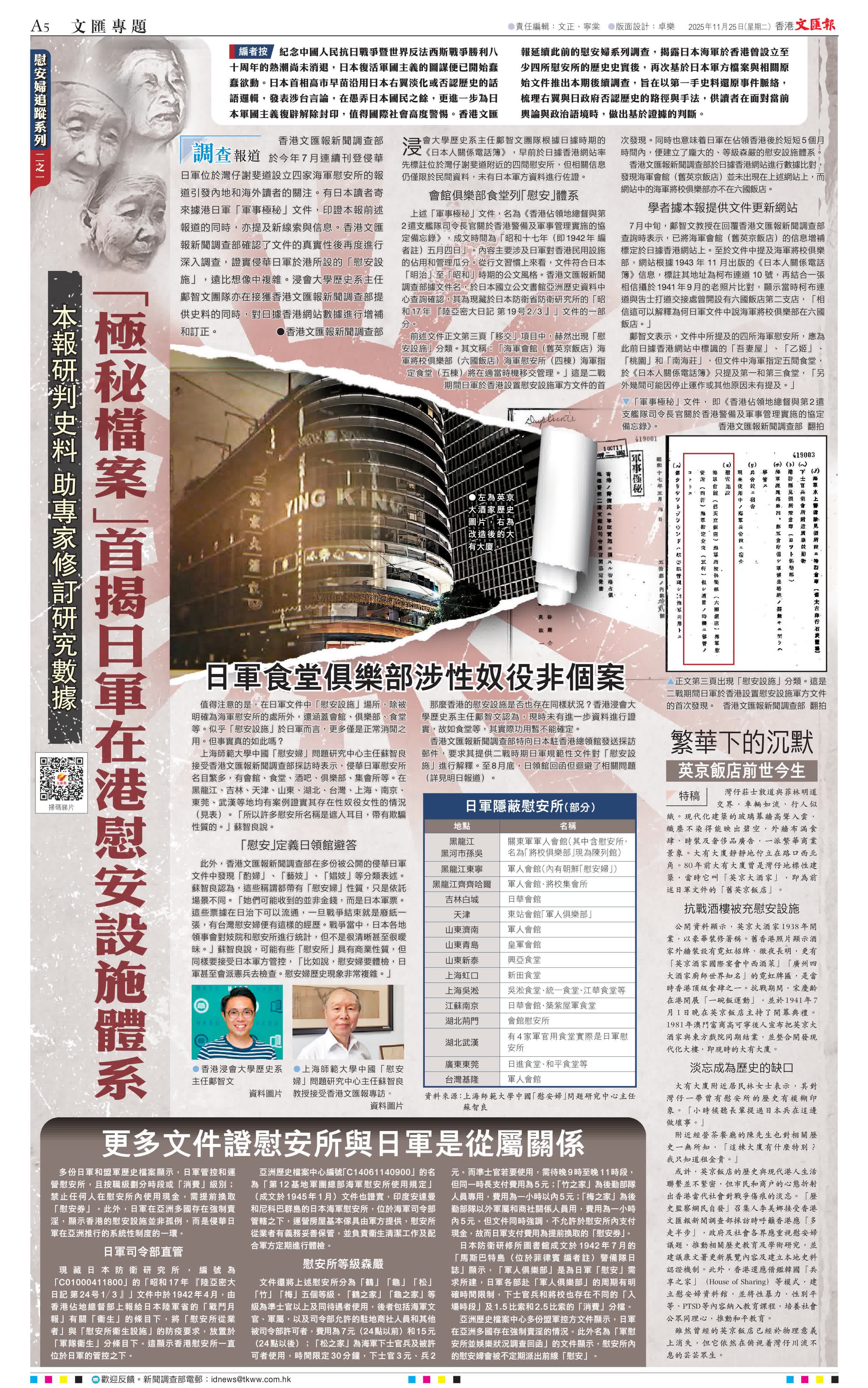 (香港文匯報新聞調查部)香港文匯報新聞調查部於今年7月連續刊登侵華日軍位於灣仔謝斐道設立四家海軍慰安所的報道引發內地和海外讀者的關注。有日本讀者寄來據港日軍「軍事極秘」文件,印證本報前述報道的同時,亦提及新線索與信息。香港文匯報新聞調查部確認了文件的真實性後再度進行深入調查,證實侵華日軍於港所設的「慰安設施」,遠比想像中複雜。浸會大學歷史系主任鄺智文團隊亦在接獲香港文匯報新聞調查部提供史料的同時,對日據香港網站數據進行增補和訂正。