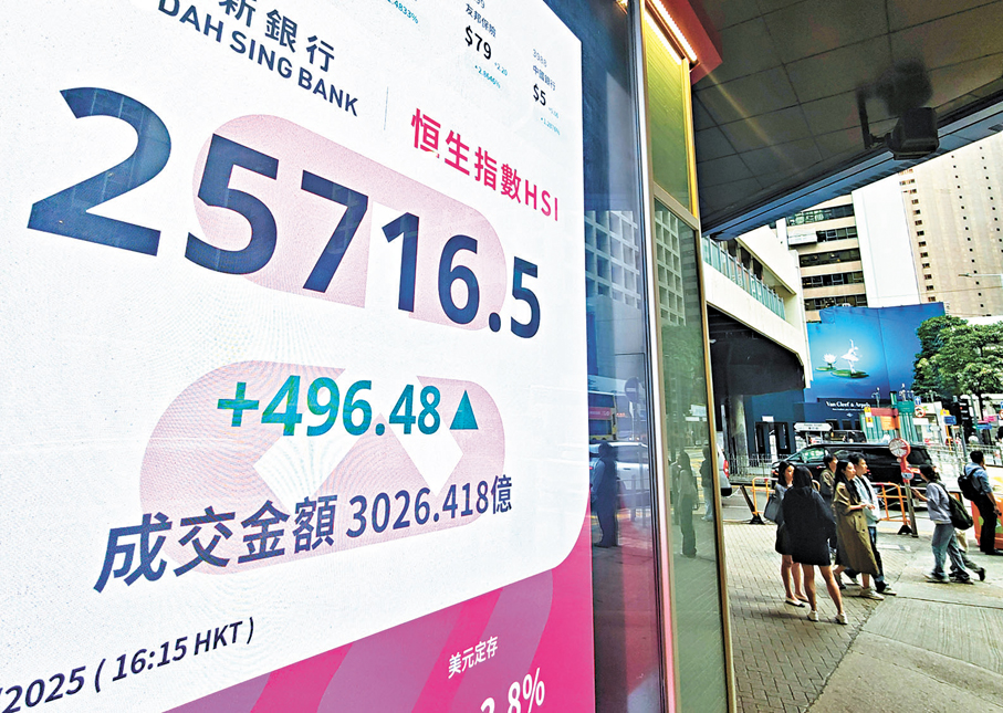 港股預託證券上周五在美國市場回勇,帶動昨日恒指高開232點後越升越有。本周有多項跟科技股相關的利好消息出台,在科技股帶動下將港股推升496點,收報25,716點,一舉收復100天線(25,654點)。科指升幅凌厲,全日大升2.8%,收報5,545點,成交額回升至3,026億元。當中阿里巴巴(9988)最受矚目,內地媒體指,阿里的「千問」App一周下載量突破1,000萬,超過ChatGPT、Sora及DeepSeek當年同期的下載量,加上今日該股將公布季績,市場人士普遍看好,令該股大彈4.7%,收報154.5元,獨力貢獻恒指約104點。