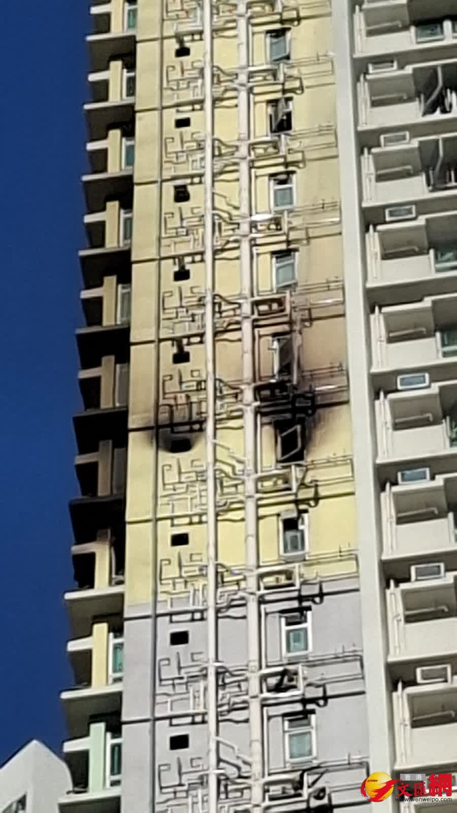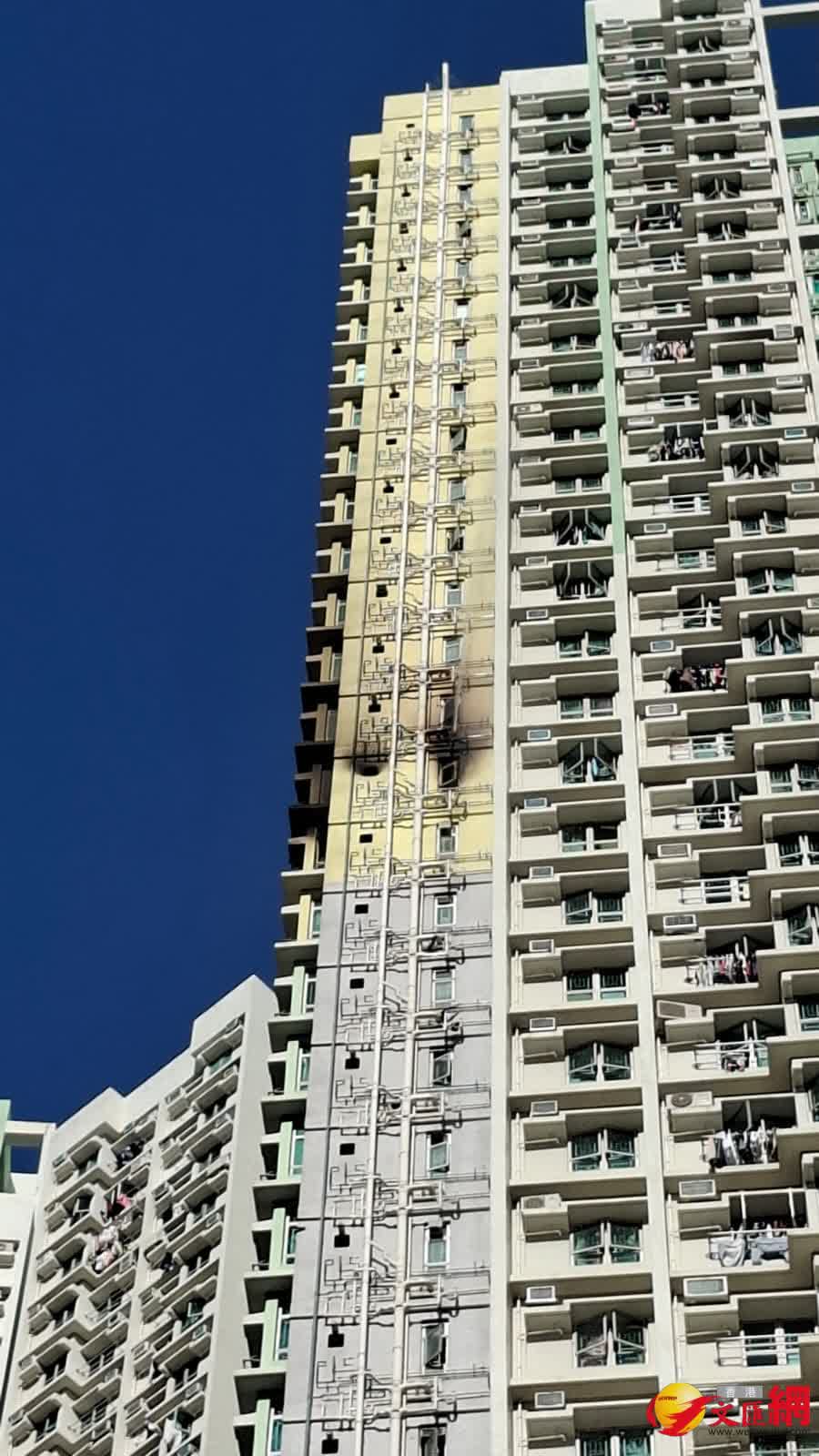 香港文匯報訊(記者 蕭景源)啟德啟晴邨樂晴樓樓上一單位今日(25日)下午2時27分發生火警,單位窗口噴出火烈焰及冒出濃煙,消防員到場登樓開喉灌救約20分鐘將火救熄,期間近百住客要疏散到樓下暫避。事後現場可見起火單位的窗口及外牆嚴重熏黑,警方和消防正調查起火原因。