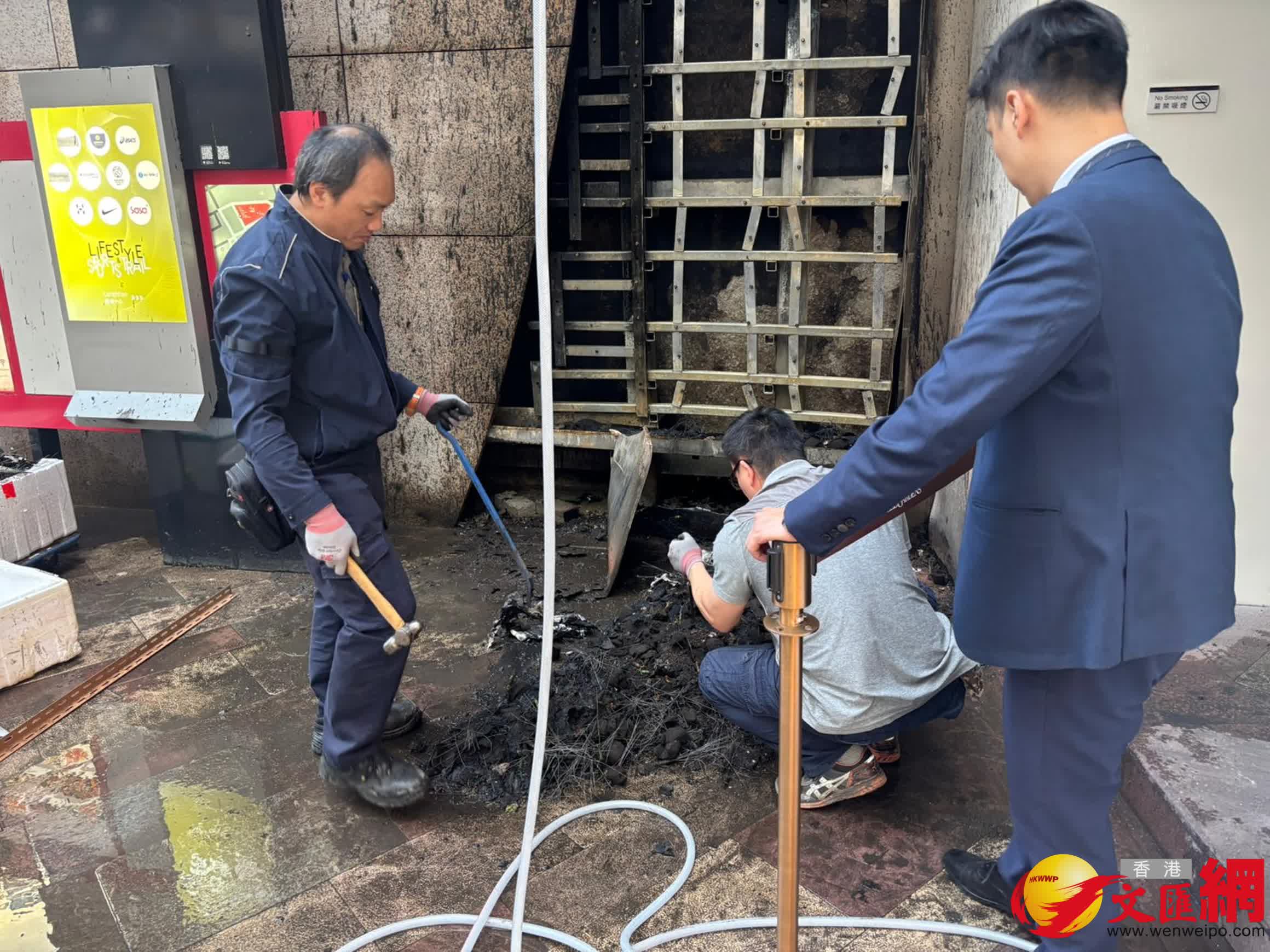 警方事後經調查包括翻查閉路電視,發現在火警前約中午12時13分,曾有一名男子抽煙後在人造草牆上按壓煙頭,其後人造草牆冒煙起火,相信火警由未熄煙頭引起,認為火警原因無可疑。惟現場數層樓高的巨幅人造草牆被焚燒殆盡,所幸未釀成傷亡。