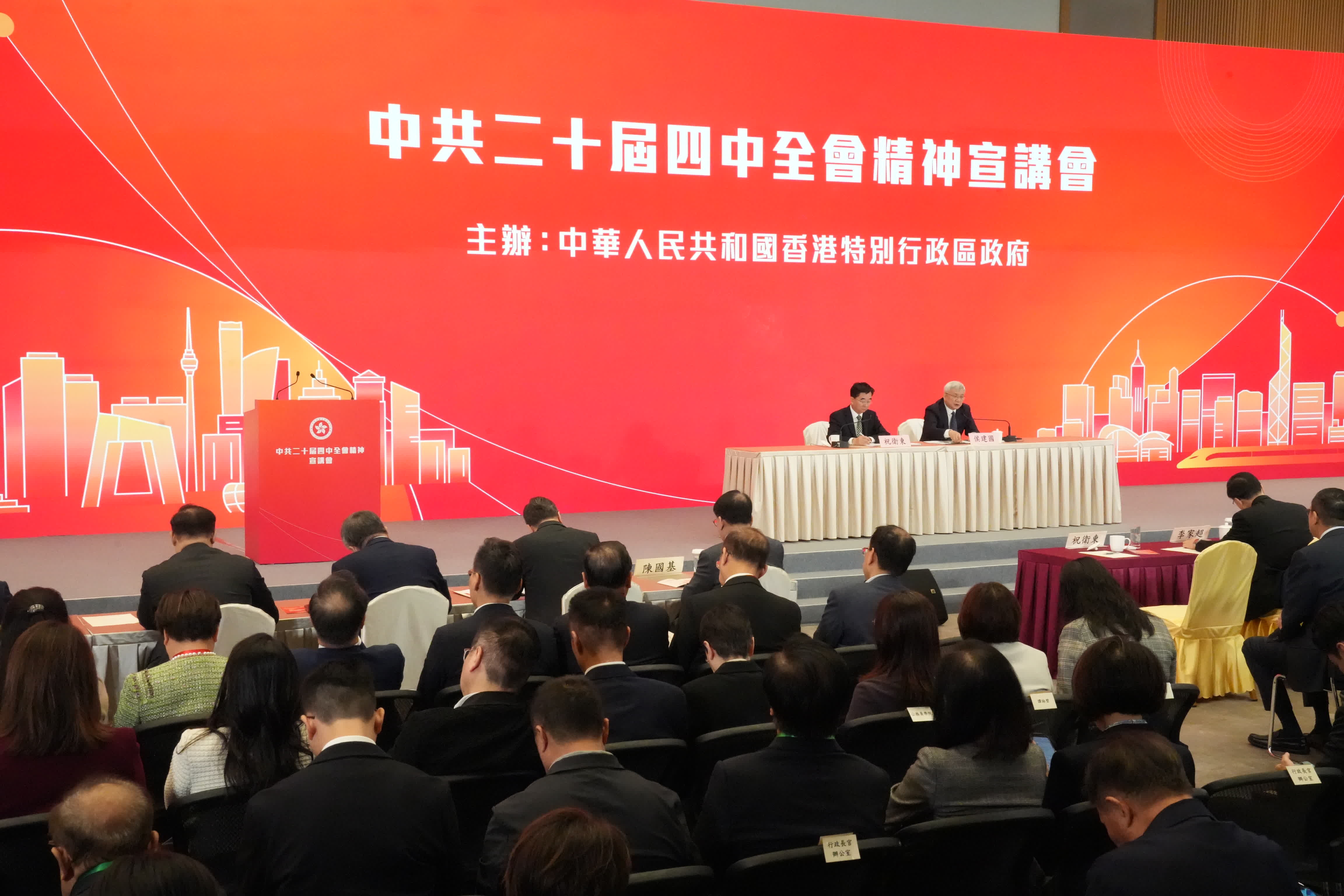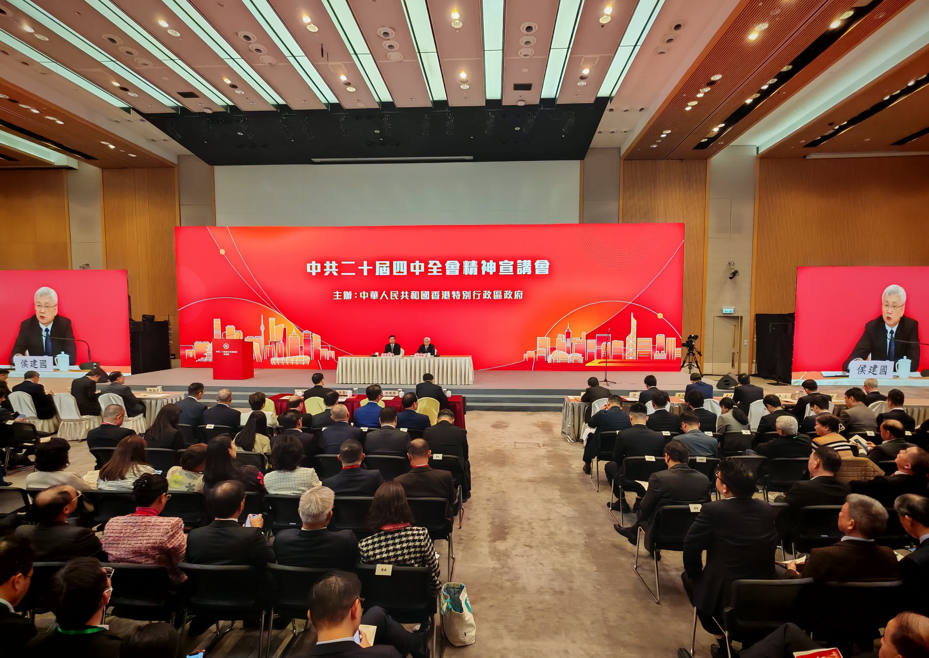 (大公文匯全媒體報道)應香港特別行政區政府請求,經中央批准,中央港澳工作辦公室、國務院港澳事務辦公室邀請中央宣講團成員,中國科學院院長、黨組書記侯建國和中央宣講團成員,中央財經委員會辦公室副主任、中央農村工作領導小組辦公室副主任祝衛東來港宣講中共二十屆四中全會精神。特區政府今日(25日)上午在政府總部舉行宣講會,向社會各界人士宣講中共二十屆四中全會精神。
