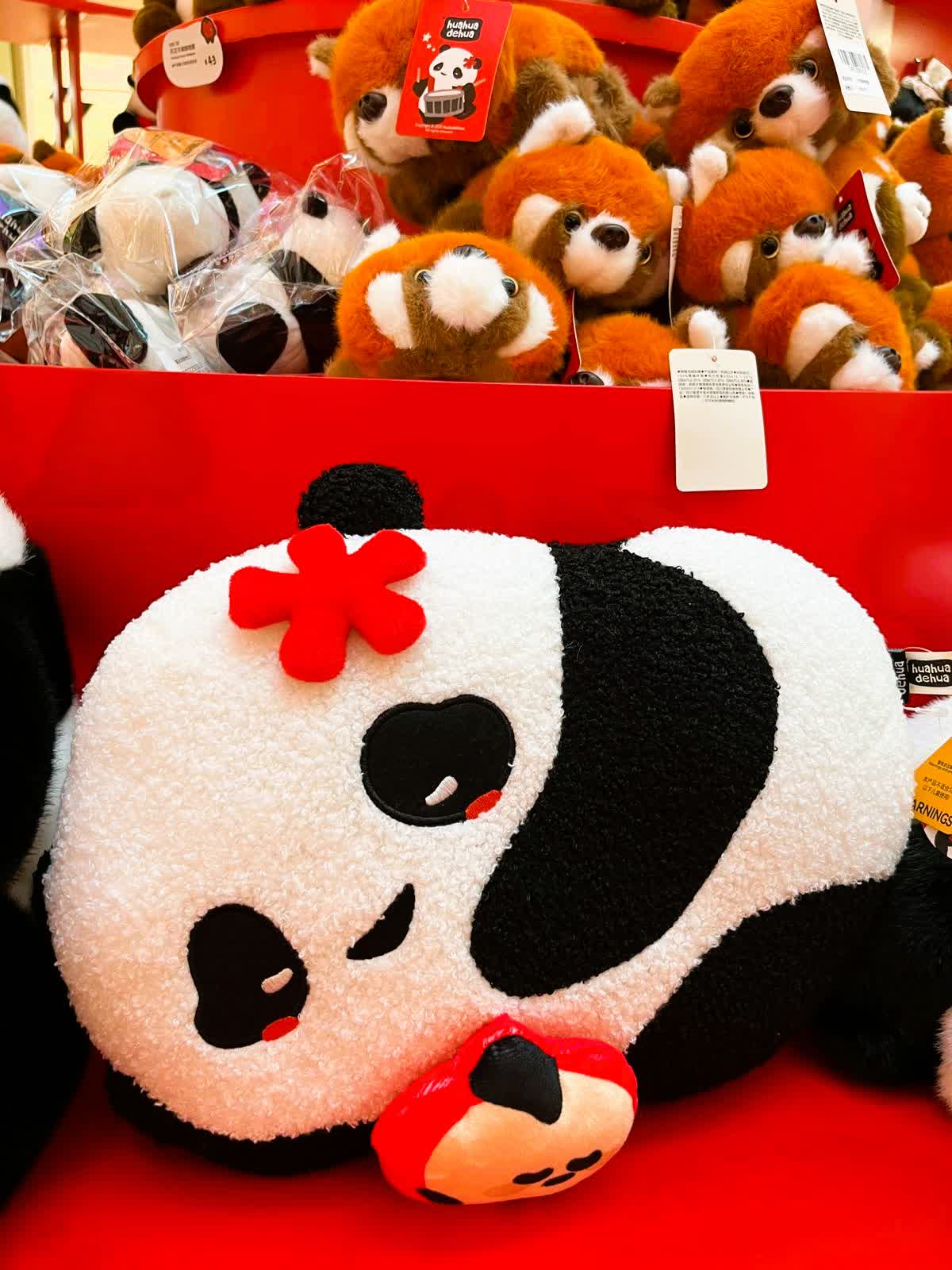 此外,¥36的熊貓曲奇餅也值得入手,貨品種類繁多可謂包羅萬有。據知閒日也有不少港客到訪,主要入手較易攜走的豆袋坐坐熊貓(¥59)。值得一提,商場外牆高層近林平路更有聖誕造型的花花吹氣公仔,遠觀也能感受「熊」出沒的快樂。