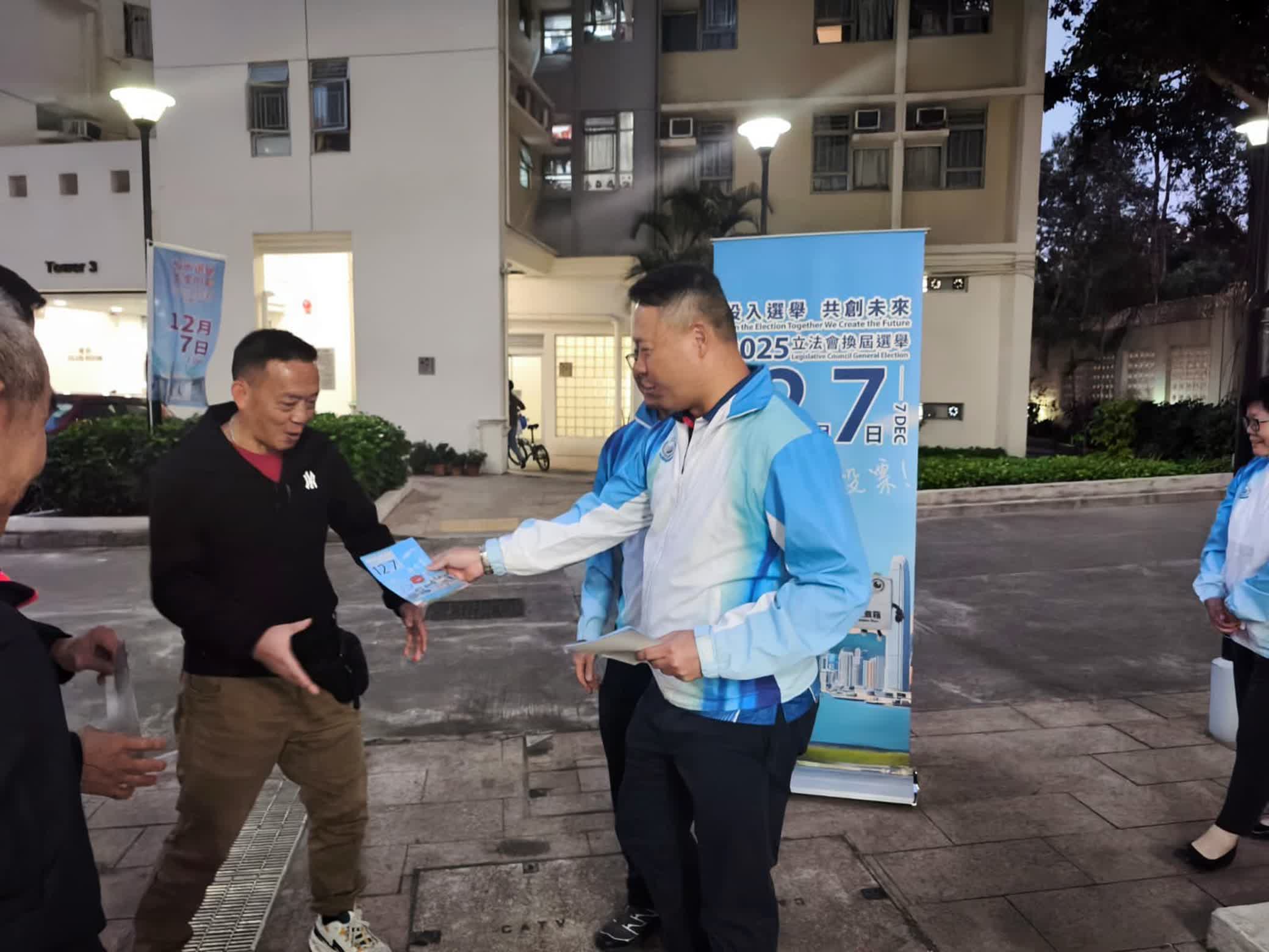 香港文匯報訊(記者 蕭景源)警務處人事及訓練處處長蔡展鵬,今日(25日)聯同香港警察隊員佐級協會主席梁俊傑,以及人事服務及職員關係科人員,到上水已婚警察宿舍派發宣傳單張,呼籲居民於12月7日「2025立法會換屆選舉」積極投票,一同為香港未來出力。