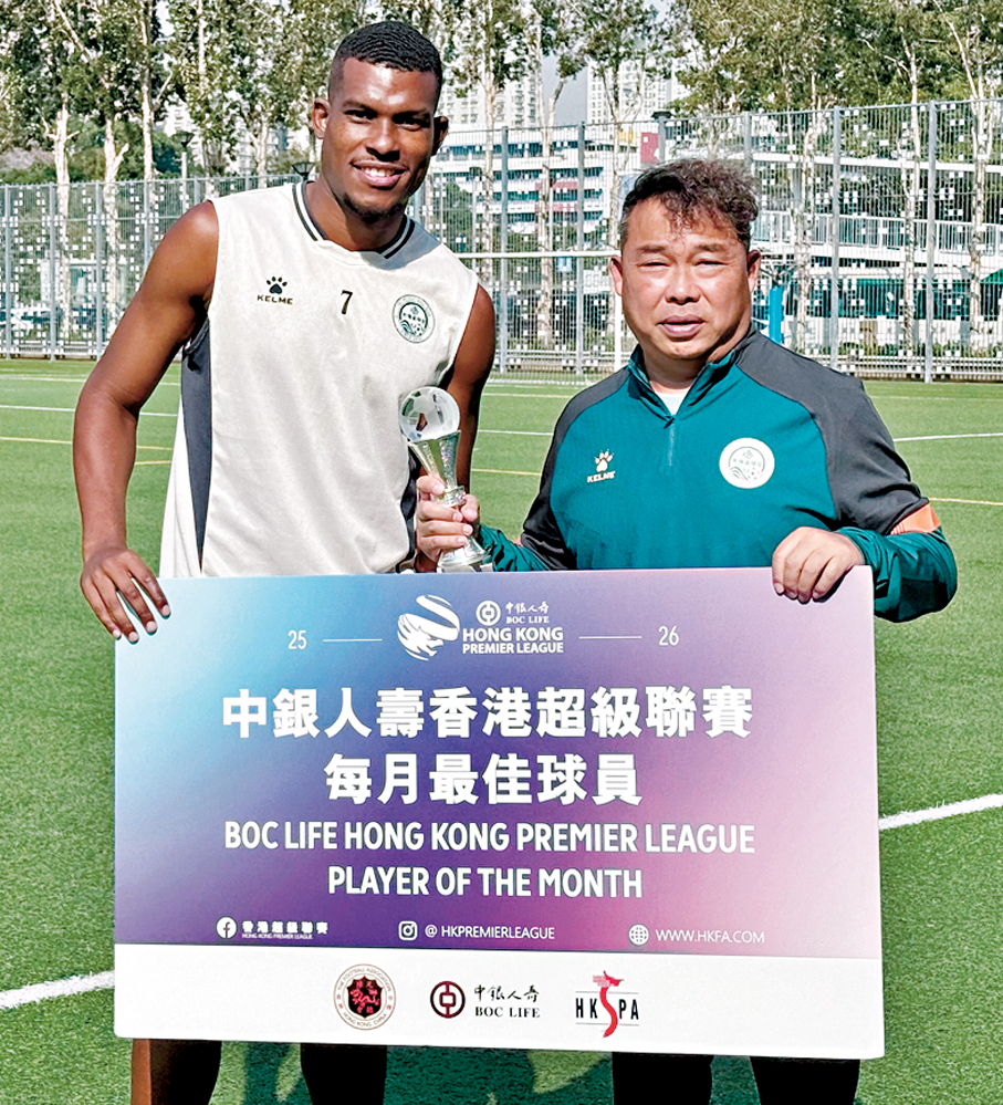 香港文匯報訊 巴西外援馬卡雷拿首度當選每月最佳球員,繼添姆高夫斯基在8、9月連續獲獎後,成為今季另一位獲此殊榮的大埔球員。