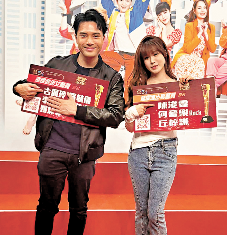 緋聞男女陳浚霆及古佩玲,分別入圍「飛躍進步男、女藝人」,陳浚霆笑言自己同這個獎項擦身而過多年,已經擦到周身傷,但都開心被肯定,加上今年有份主演的《金式森林》回響亦很不錯,希望有機會能得獎。