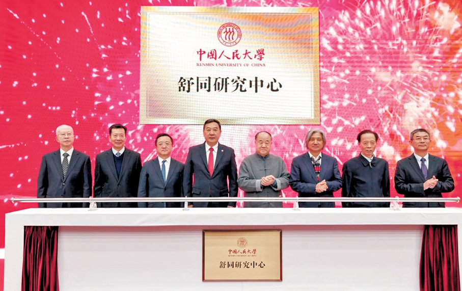 中國人民大學黨委書記張東剛致辭稱,學校成立舒同研究中心及聘任莫言為兼職教授,是踐行高校使命、植根中華文明、以紅色資源激發文化創新創造活力的扎實行動,要將中心建設為賡續紅色血脈和弘揚革命精神的育人陣地、書法藝術傳承創新基地、國際性文化交流平台。