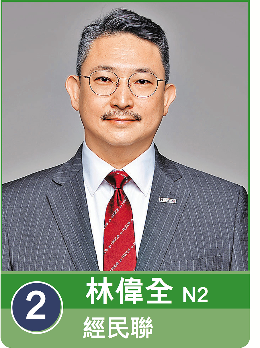 N2號候選人、創業家林偉全提出五點政綱,包括促進轉型升級,深化灣區協同,構建智慧城市;以及扶持青年創業,推動產業革新,凝聚工商力量等。林偉全希望繼續以同理心服務社會,為香港的繁榮發展貢獻力量,攜手同行,一起建設更美好的香港商業環境。