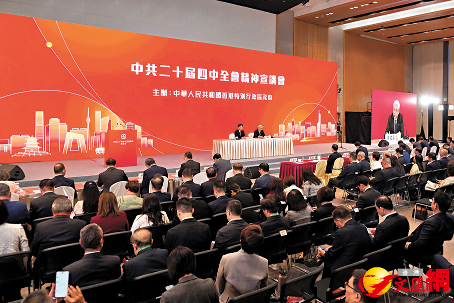 香港特區行政長官李家超,中央港澳工作辦公室副主任、國務院港澳事務辦公室副主任、中央政府駐港聯絡辦公室主任周霽分別在宣講會上致辭。侯建國、祝衛東分別作宣講,深入闡釋了中共二十屆四中全會精神,以及《中共中央關於制定國民經濟和社會發展第十五個五年規劃的建議》的主要內容和重大意義,兩位宣講團成員亦回應了與會者提出的問題。李家超作總結發言。社會各界人士包括香港地區全國人大代表和全國政協委員,社區領袖,工商、專業、教育、傳媒等界別和青年代表約500人出席了宣講會。