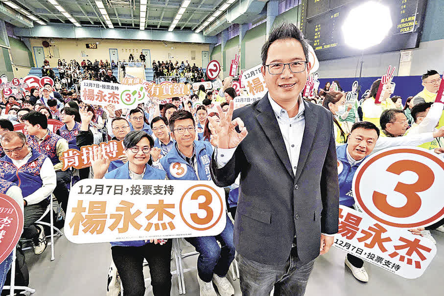 3號候選人、爭取連任的現任立法會議員楊永杰表示,今次將以「十三大政綱」為重點,全面涵蓋置業安居、便利出行、樂齡安老、社區支援等多項範疇,全力以赴建設一個宜居、創新、共融的九龍中。