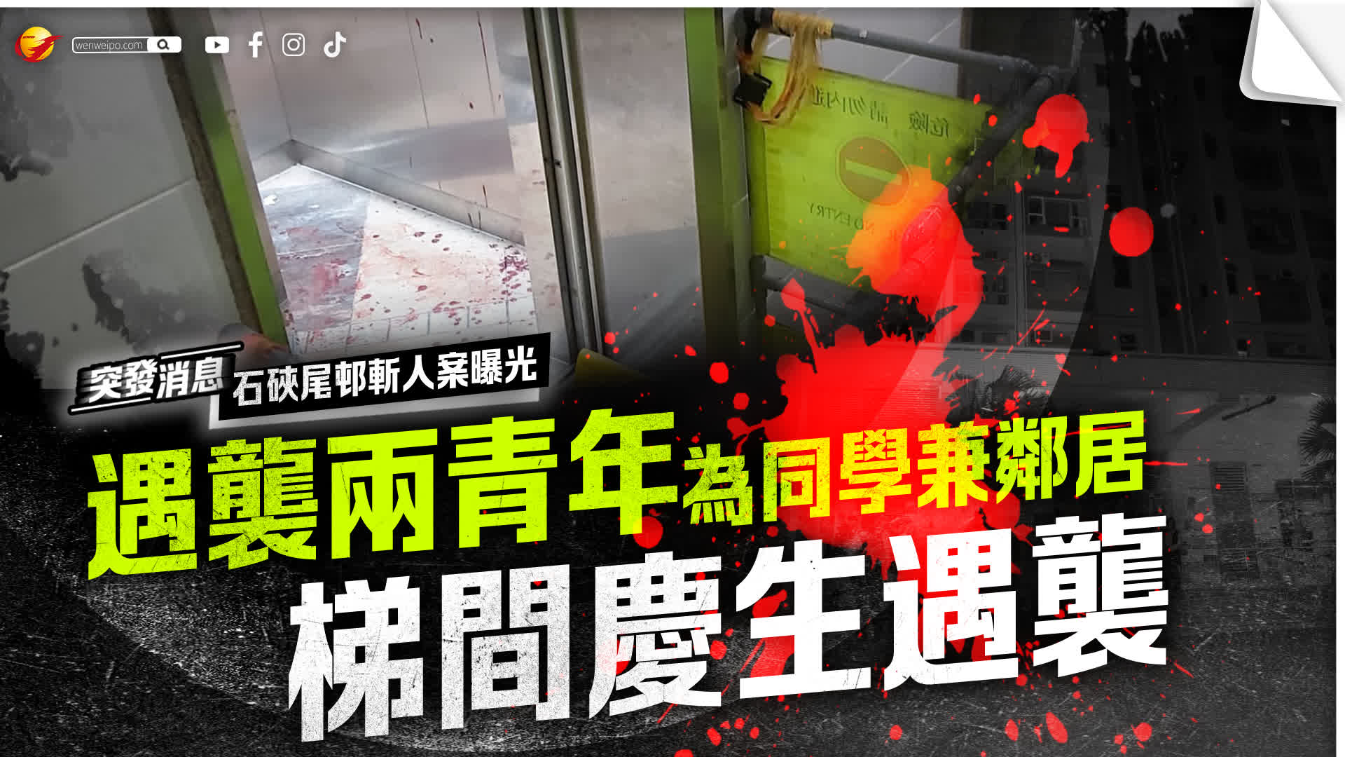 香港文匯報訊(記者 蕭景源)昨日(25日)晚上石硤尾邨發生斬人血案內情進一步曝光,遇襲兩青年為同學兼鄰居,案發時兩人正在大廈樓梯間慶祝生日;詎料期間突然遇襲,其中「壽星仔」身中多刀浴血重傷;案件交由深水埗反三合會第一隊跟進。