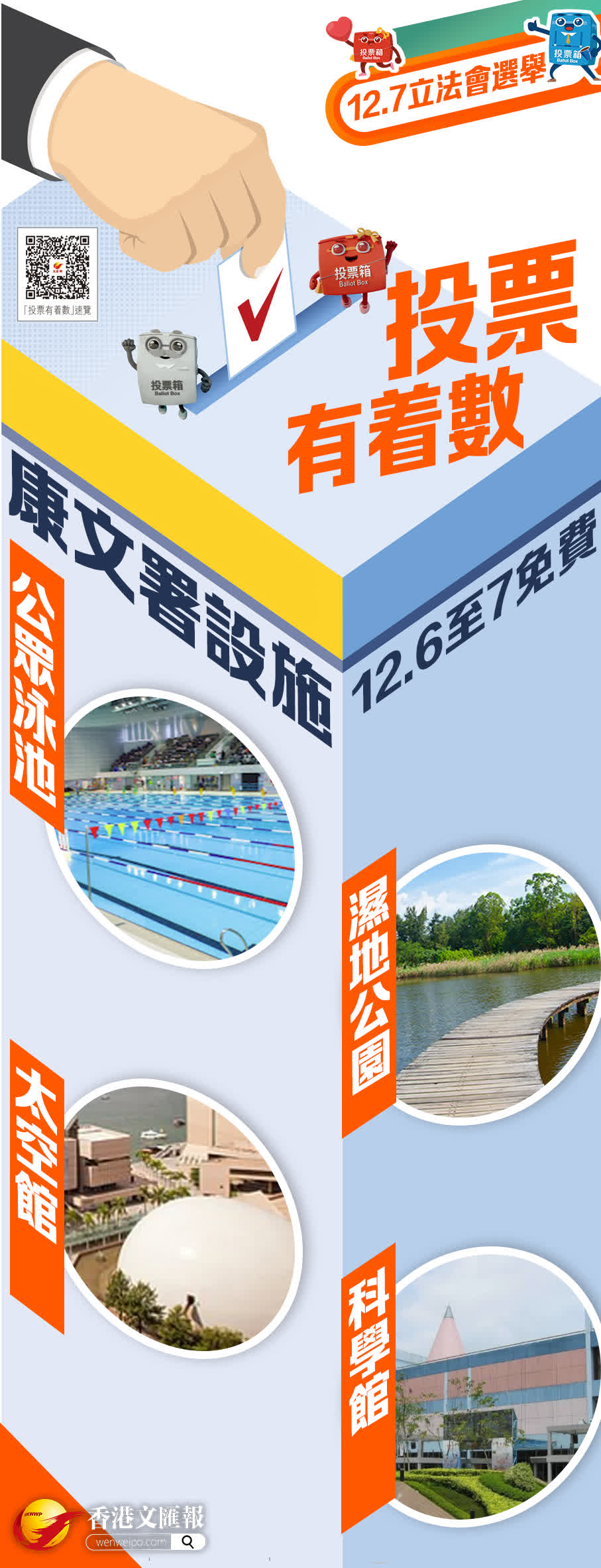 陳國基宣布,為了鼓勵投票,政府會在投票日及前一天周六,即下月6及7日,免費開放康文署設施,包括公眾泳池、濕地公園、太空館及科學館等,無論市民有無投票,都可以免費使用。