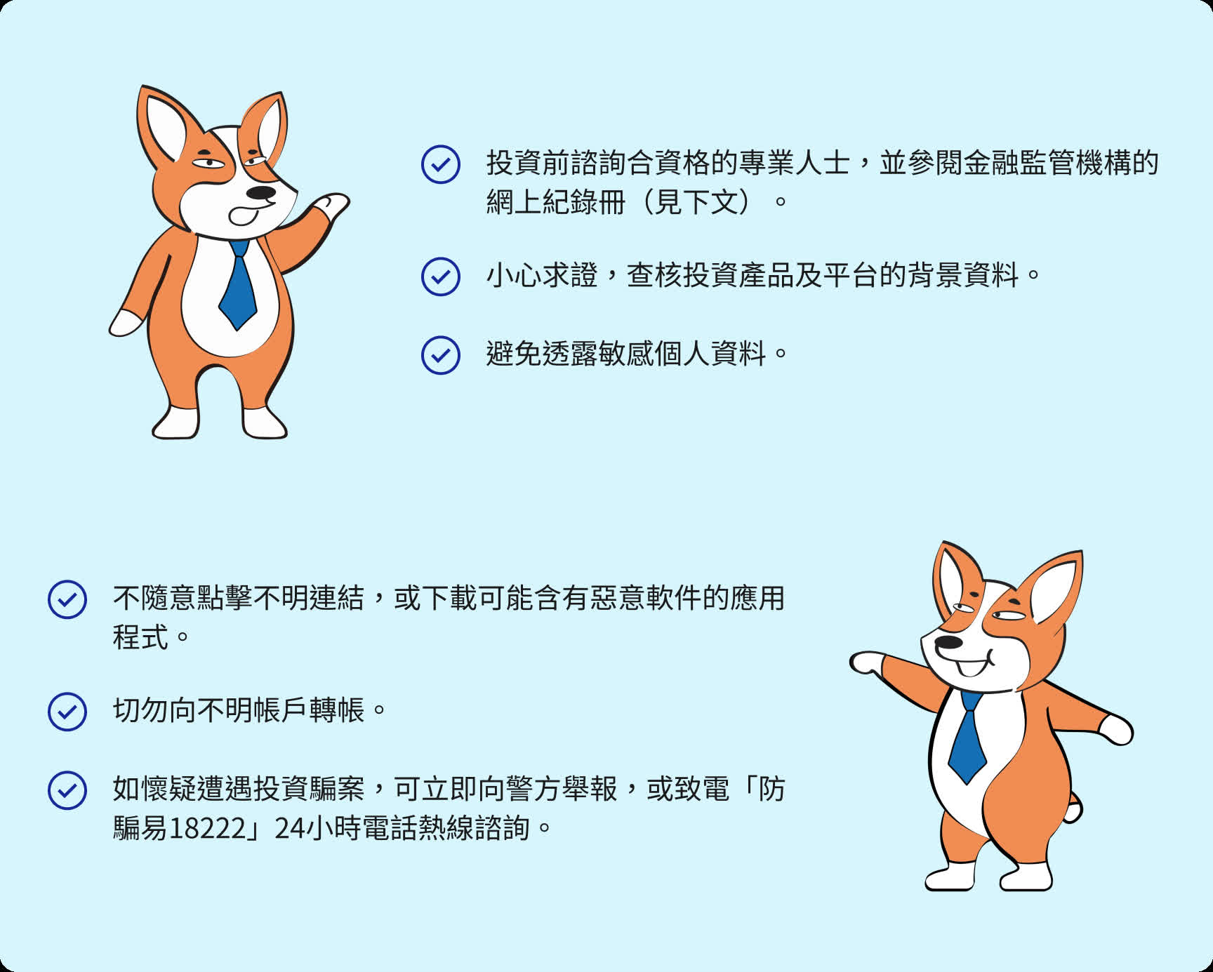 此動畫系列共有三集,涵蓋主題包括基金主要類型簡介、基金的專業管理、及防詐騙教育。透過證監會的「水魚」及基金公會的「基哥」兩個原創角色,提醒市民防範假冒基金經理及可疑投資計劃。基金公會網站亦新增了防騙資訊專頁,提供一站式基金投資教育資源予公眾瀏覽。