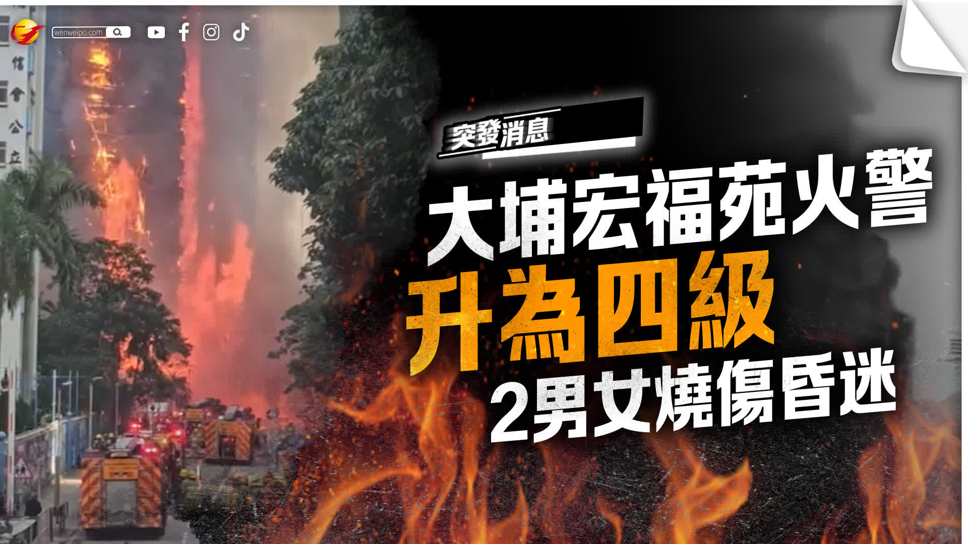 香港文匯報訊(記者 蕭景源)大埔宏福苑宏昌閣外牆大片棚架今日(26日)下午約2時51分起火,消防於下午3時02分將火警升為三級,並於下午3時34分進一步將火警升為四級。消防人員正進行滅火行動。現場消息指,現場頻繁傳出爆炸聲,大火蔓延到宏泰閣等樓宇,消防接獲多名居民求助指未能逃生,目前至少兩男女燒傷昏迷 。