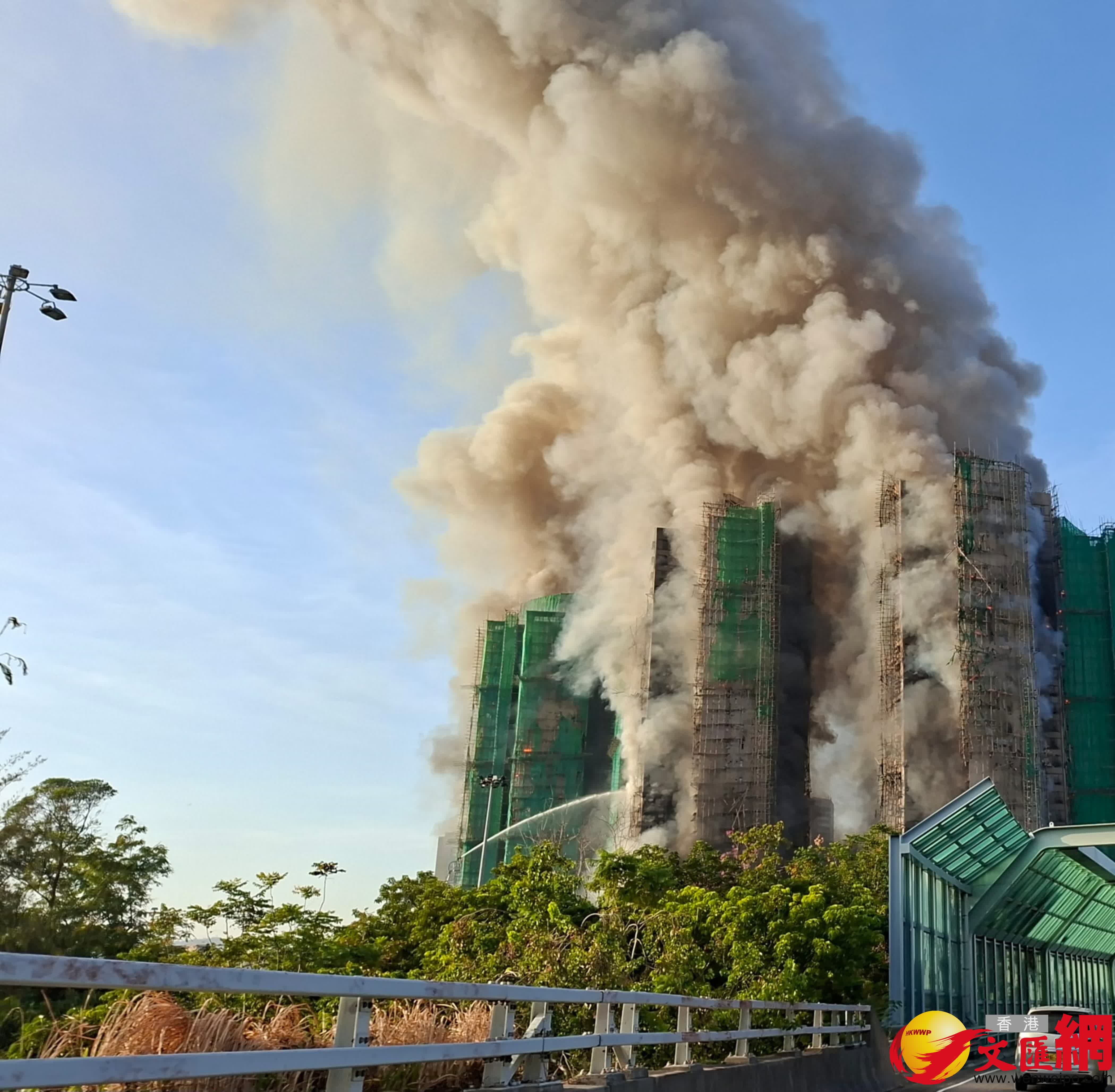 期間,起火大廈有部分棚架被燒斷,不斷有裝修物料飄落,點燃更多火頭,有單位亦被燒著,濃煙在大埔墟及馬鞍山都見到。目前大批消防員正努力撲救,包括出動雲梯不斷向大廈射水。大批住客被疏散到樓下暫避。