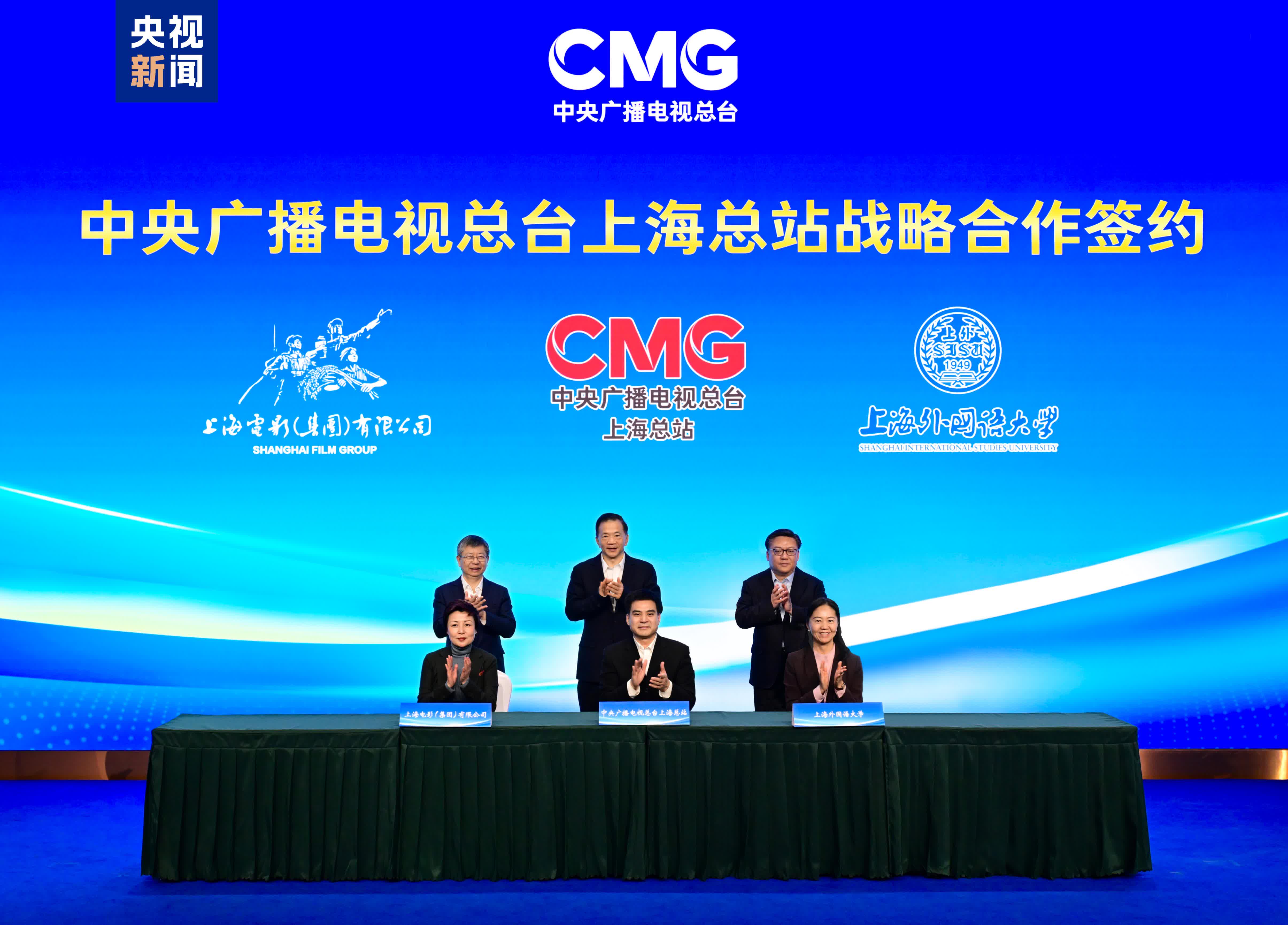 11月26日,中央廣播電視總台高質量發展上海項目發布會在上海國際傳媒港舉行。中宣部副部長、中央廣播電視總台台長慎海雄,上海市委常委、宣傳部部長趙嘉鳴出席活動,並與中央廣播電視總台編務會議成員姜文波共同見證總台上海總站與上海外國語大學、上海電影(集團)有限公司簽署戰略合作協議。