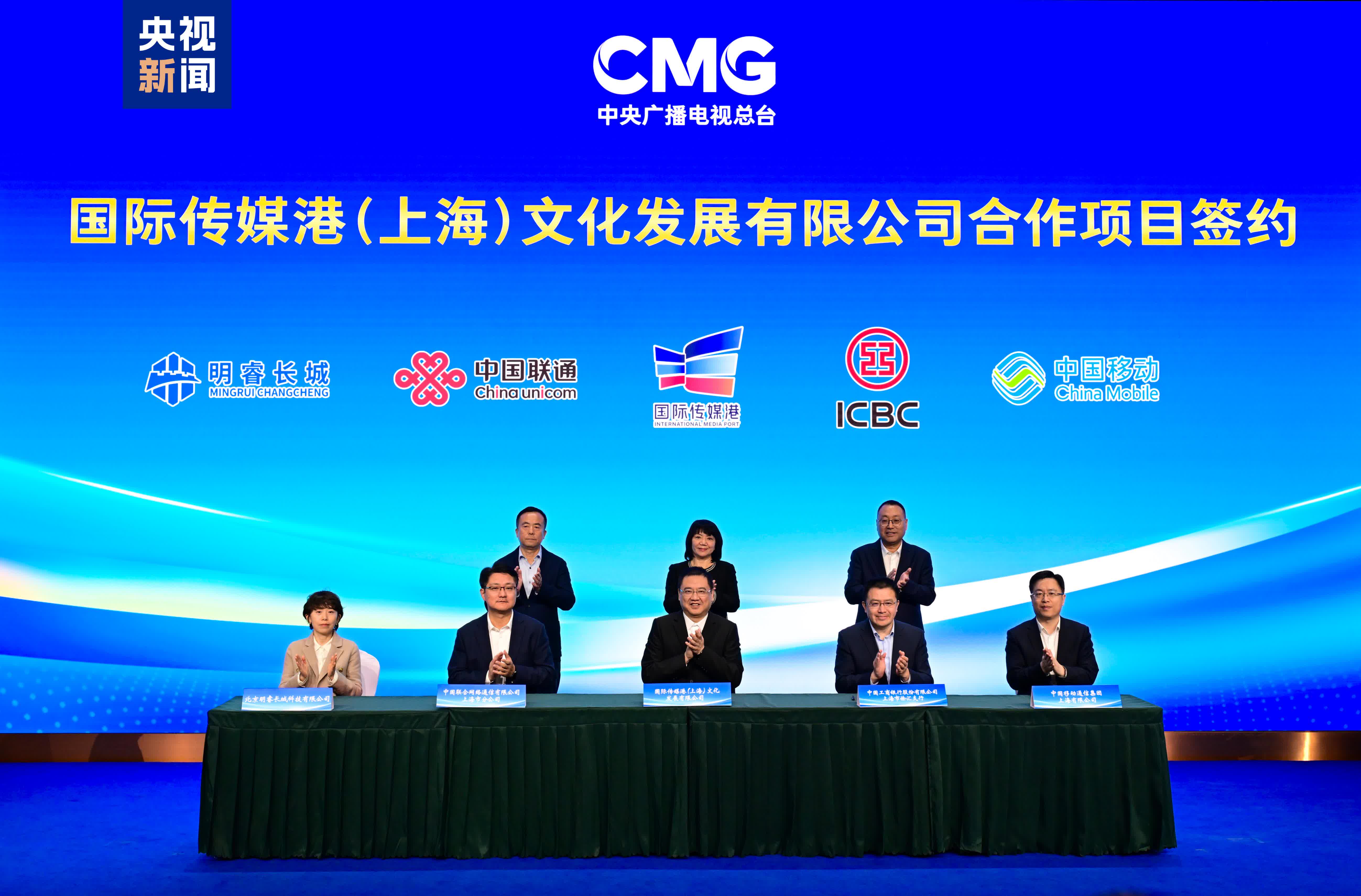 發布會現場,國際傳媒港(上海)文化發展有限公司與通信、金融、文化、科技等領域四家單位簽約合作。