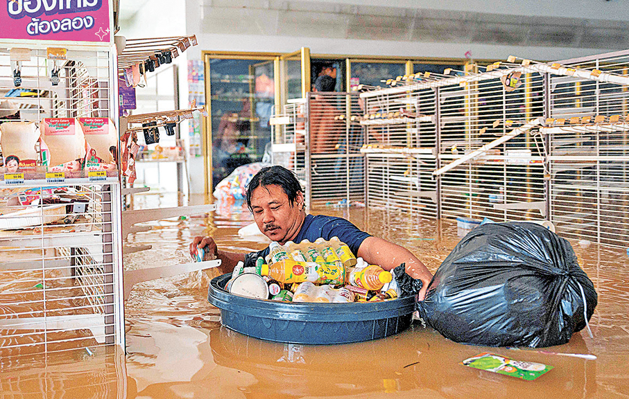 香港文匯報訊 路透社周二(11月25日)報道,泰國南部地區近期出現強降雨,加劇該地區正經歷的15年來最嚴重洪災,至今釀成至少41人死亡,救援疏散行動陷入困境。泰國政府宣布重災區宋卡府進入緊急狀態,並準備向該地區派出一艘航空母艦,運送救援物資和醫療團隊。