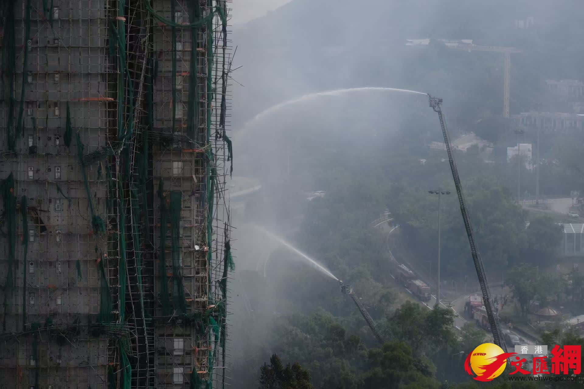 消防處副處長(公眾安全及機構策略)黃嘉榮表示,火警中起火的7座樓宇,現時4座大致救熄,餘下3座已有效控制。火警至今共接獲341個求助個案,已處理其中279個,確認在大致救熄的4座樓宇中沒有求助個案,在餘下已有效控制火勢的3座樓宇中,戰術小隊已進攻到6樓以上樓層,會破門進入每個單位徹底搜索,務求盡快救出有機會的傷者。