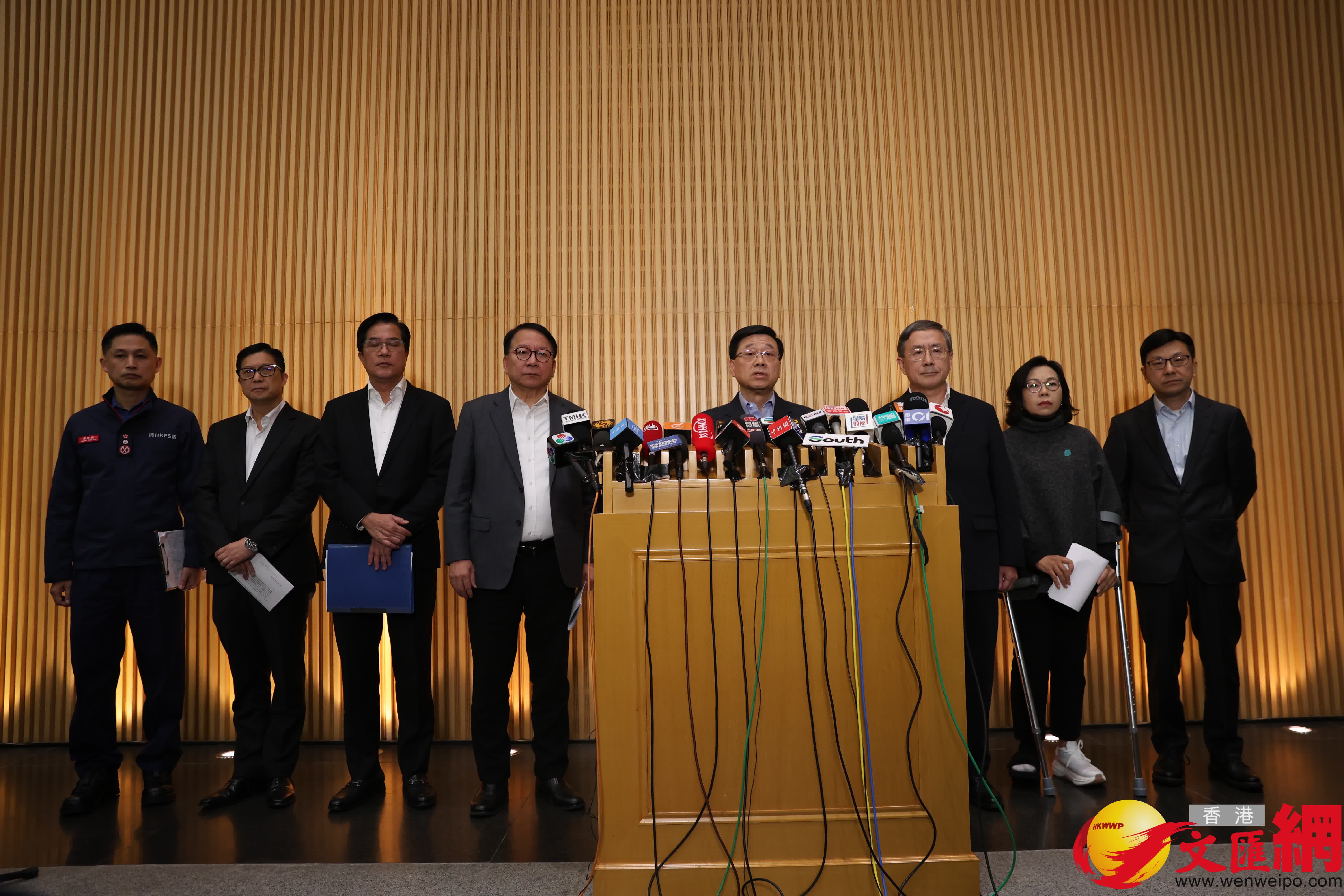 香港文匯報訊 大埔宏福苑昨日(26日)發生致命五級火,火警至今造成大量死傷,火勢燃燒逾24小時仍未完全救熄。今日(27日)下午,行政長官李家超聯同相關官員在政總就大埔宏福苑五級火警跟進工作會見傳媒。