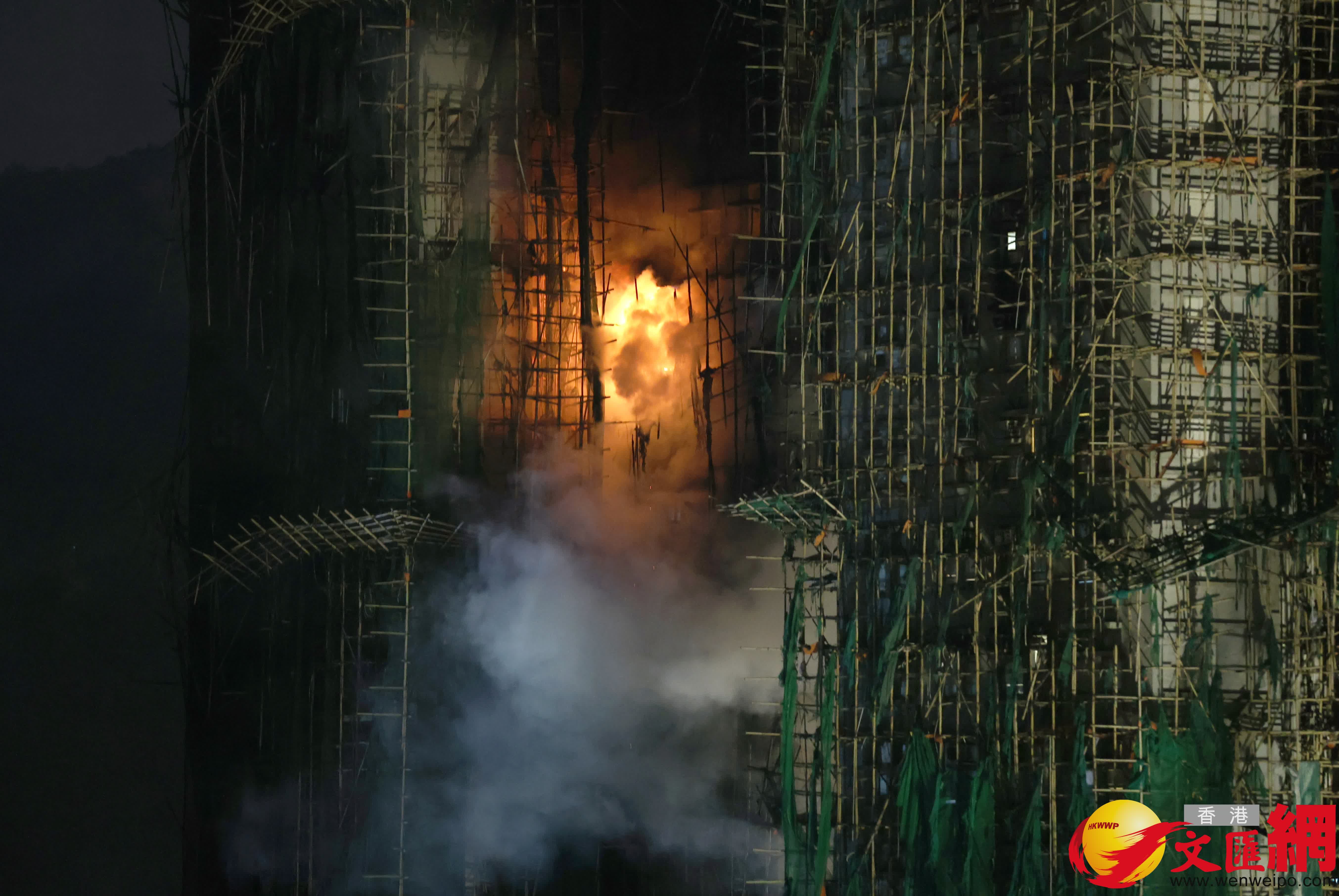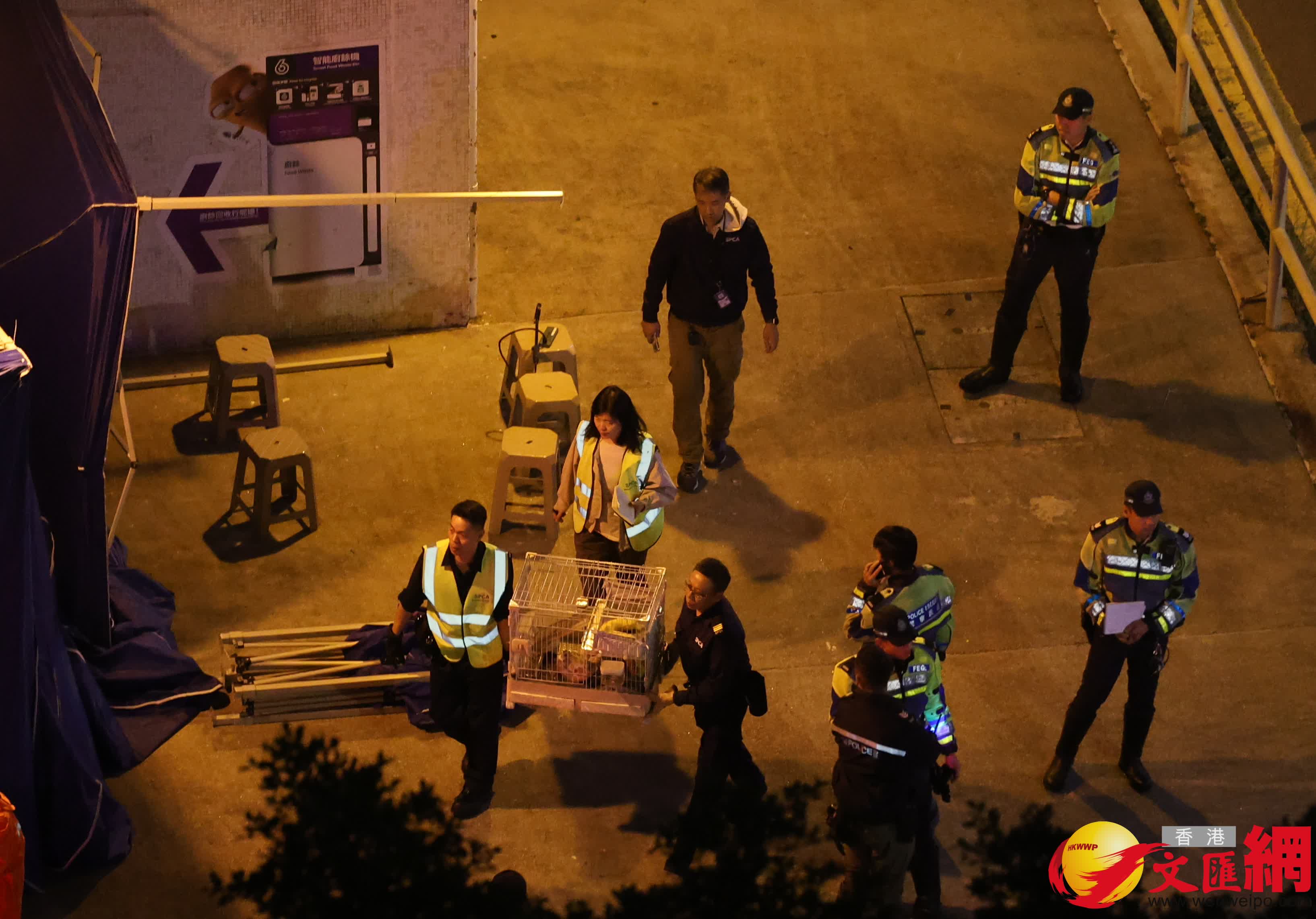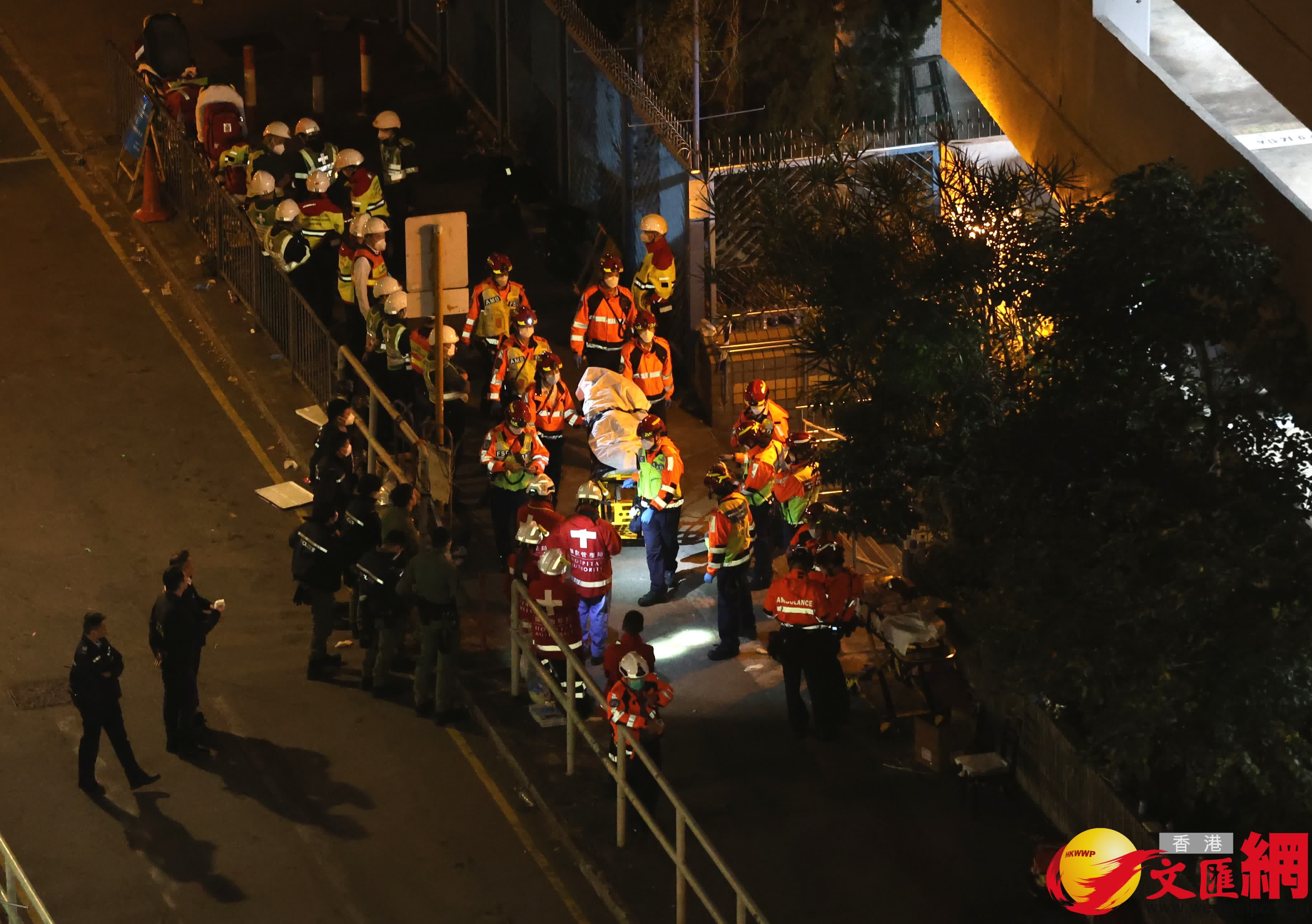 香港文匯報訊(記者 蕭景源)截至今日(27日)晚上10時,現場仍有部分單位的火警未被救熄,不時冒出火光,消防不斷射水灌救。另一方面,人員亦開始陸續由樓宇內抬出部分死者的遺體。香港文匯報記者現場所見,有救護員利用擔架床運送用白色屍袋封存的亦體。另有愛護動物協會人員用籠子抬走部分寵物,惟未知寵物情況。