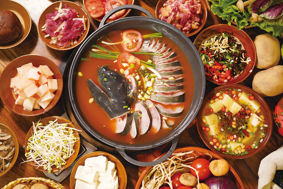 在貴州,抵禦寒涼的方式,是投入滾燙的市井煙火。讓一鍋酸湯魚,「點燃」你。酸辣滾燙的紅酸湯,是貴州冬天最熱情的「擁抱」。新鮮的江團魚在其中翻滾,先喝一碗湯,酸香開胃;再吃一口魚,鮮嫩爽滑。酸湯魚的酸主要來自自然發酵的毛辣果和米湯,辣來自貴州特有的小辣椒,這種獨特的口感是貴州美食的代表。
