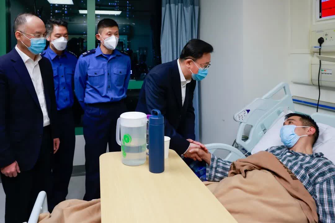 11月27日下午,中央港澳辦副主任、國務院港澳辦副主任、中央政府駐香港聯絡辦主任周霽,中央港澳辦副主任、國務院港澳辦副主任農融前往元朗博愛醫院,探望慰問參與火災救援受傷的消防員曾智燊、張頌豪和張伯樅及其家屬。