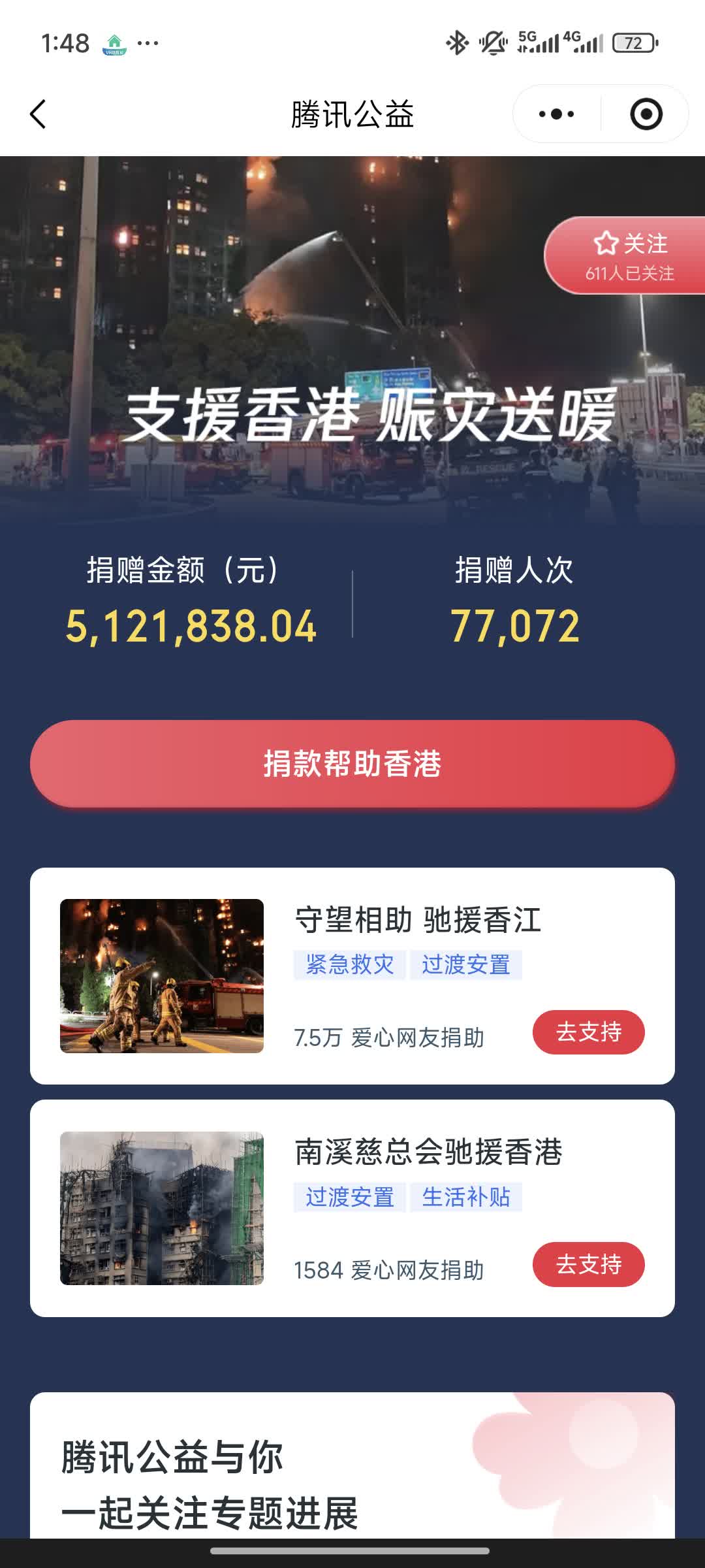 此外,騰訊微信裏的「騰訊公益」頻道也上線了捐款專欄,為內地民眾支援香港提供了便利途徑。記者點開該專欄看到,目前已有超過7萬人次參與捐款,捐贈金額超500萬。