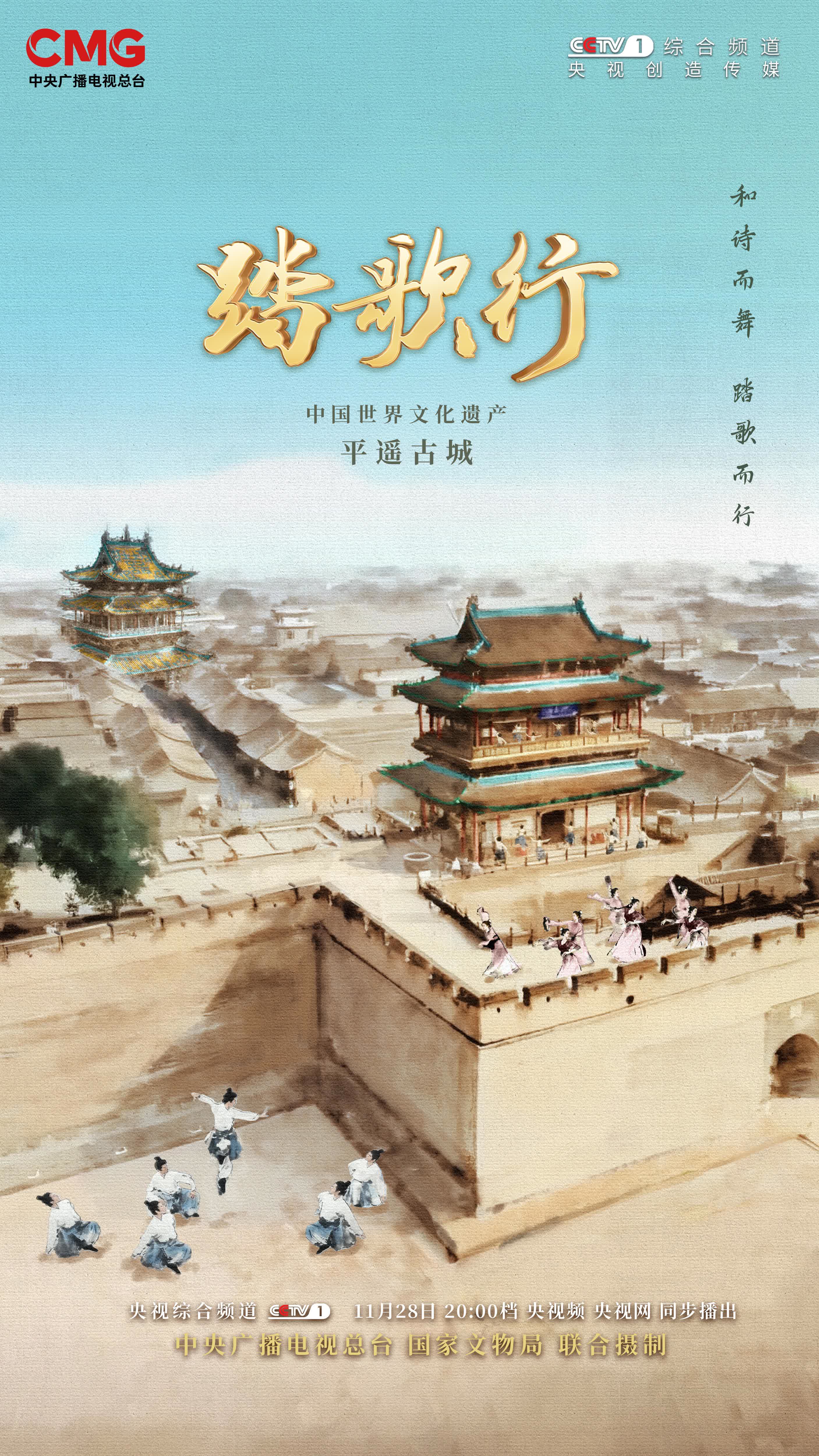 11月28日20:00檔,由中央廣播電視總台和國家文物局聯合推出的大型文化探訪節目《踏歌行》將在央視綜合頻道(CCTV-1)播出第七期,央視頻、央視網同步播出。節目將走進中國世界文化遺產——平遙古城,帶觀眾推開「時空之門」,沉浸式領略中國古人的營城智慧、生活哲學以及晉商風采,深度探索平遙古城的歷史價值、文化價值。