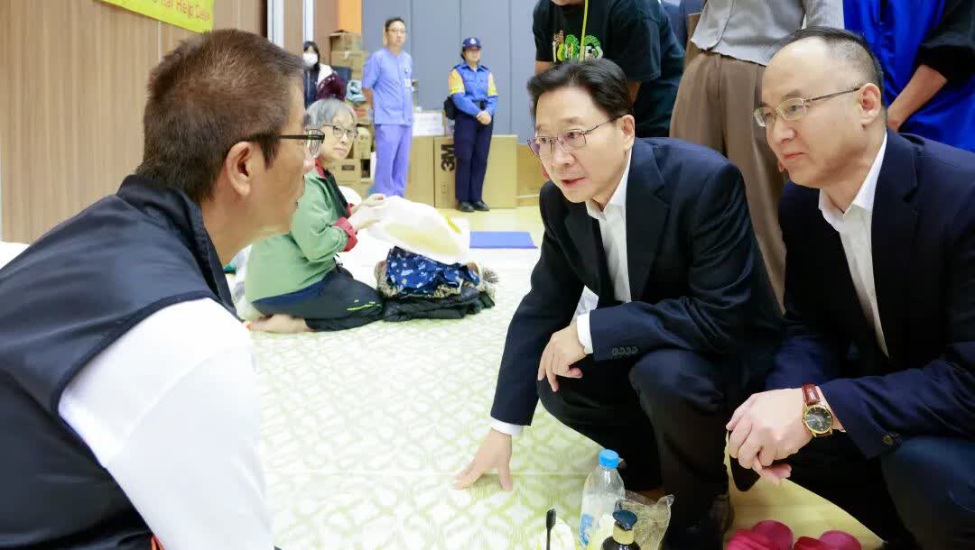 11月28日上午,中央港澳辦副主任、國務院港澳辦副主任、中央政府駐香港聯絡辦主任周霽,中央港澳辦副主任、國務院港澳辦副主任農融來到大埔東昌街社區會堂、東昌街體育館臨時庇護中心和大埔船灣臨時安置點,向受災人員轉達習近平主席、中央政府的慰問。