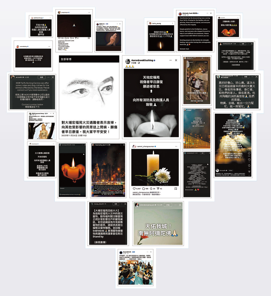 容祖兒說:「當得知大埔火災事故發生,我感到好震驚、好悲痛,有感世事好無常。這兩天一直持續關注事件,我對殉職的消防員、失去親人、失去家園的宏福苑居民致以最真切的關懷,亦感謝無比英勇的救災人員。我希望受災者可以早日安頓下來,幫助大家重新生活。」