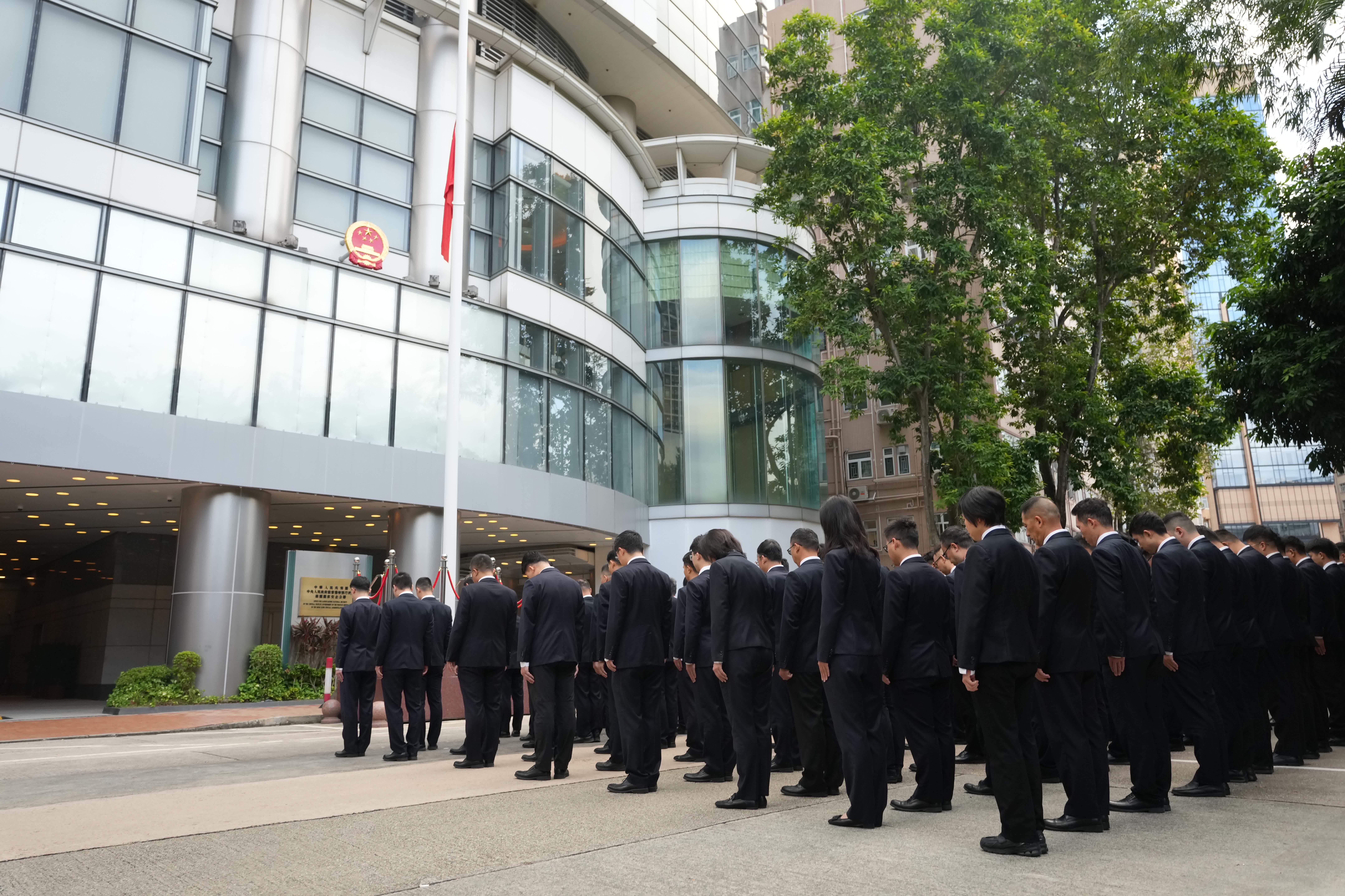(圖集)大埔宏福苑大火︱駐港國安公署舉行悼念默哀儀式