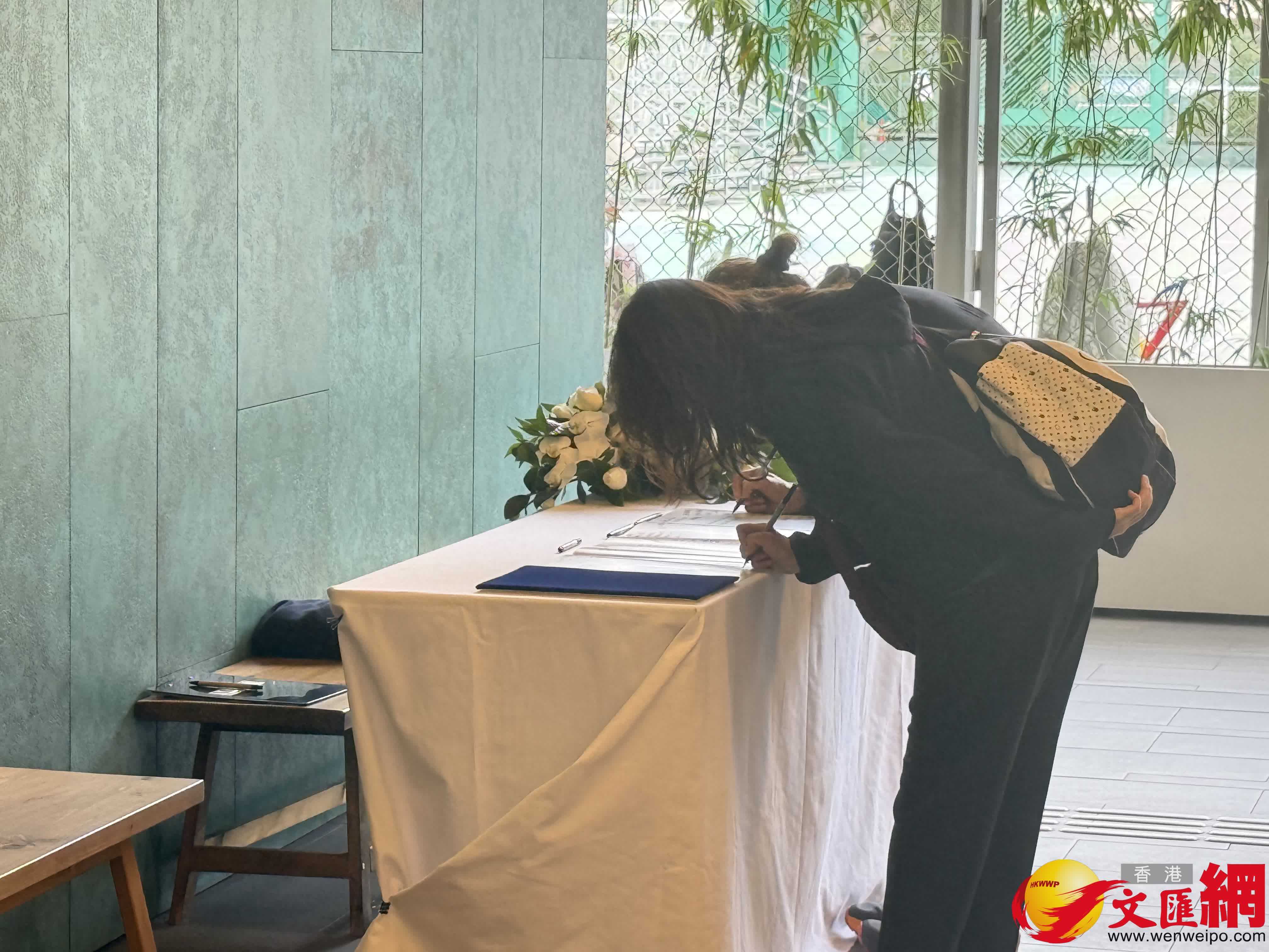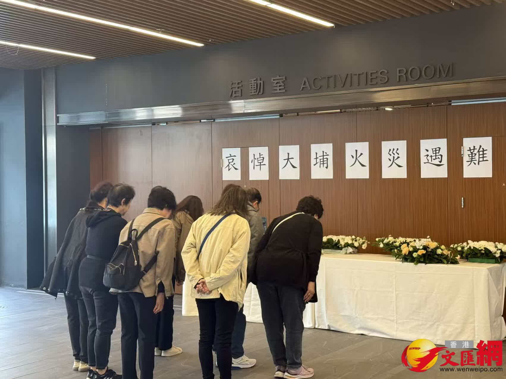 香港文匯報訊 為表達對大埔宏福苑火災罹難者的沉重哀悼,民政事務總署由今日(29日)至12月1日會於全港18區設置弔唁處,供市民簽署弔唁冊,以表達對罹難者的深切悼念。其中設在銅鑼灣徑20號摩頓台活動中心弔唁處內,工作人員在牆上掛上白底黑字、寫上「哀悼大埔火災遇難者」的橫幅,擺放了多束白色鮮花,市民簽署弔唁冊並留言悼念。