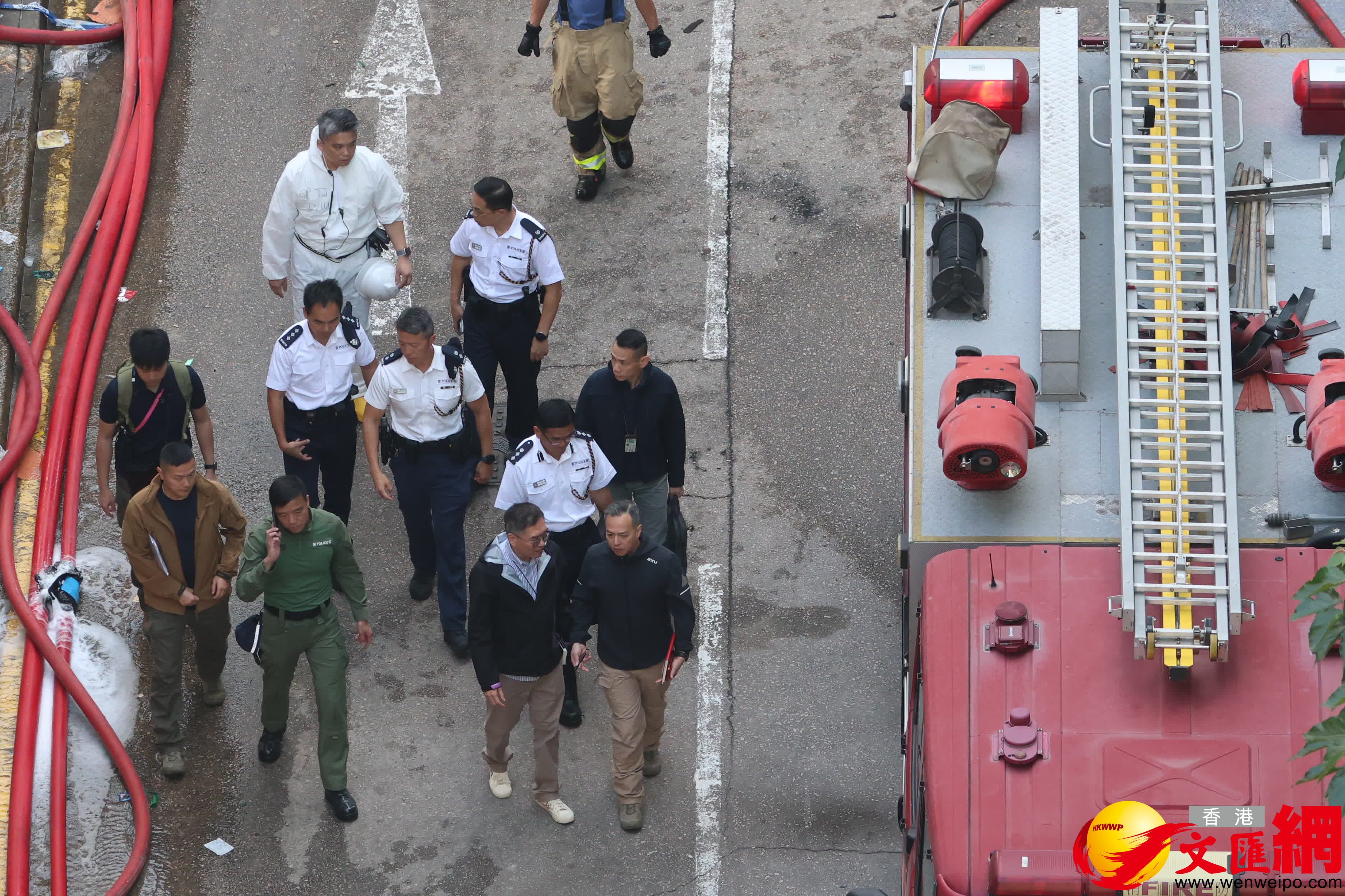 香港文匯報訊(記者 蕭景源)今日(29日)下午,警務處處長周一鳴與多名警隊高層,包括副處長簡啟恩、行動處處長呂錦豪、大埔警區指揮官江永祥等,抵達發生五級大火的大埔宏福苑災場視察。期間,周一鳴前往位於廣福社區會堂外的警方流動指揮站,向相關人員了解情況。