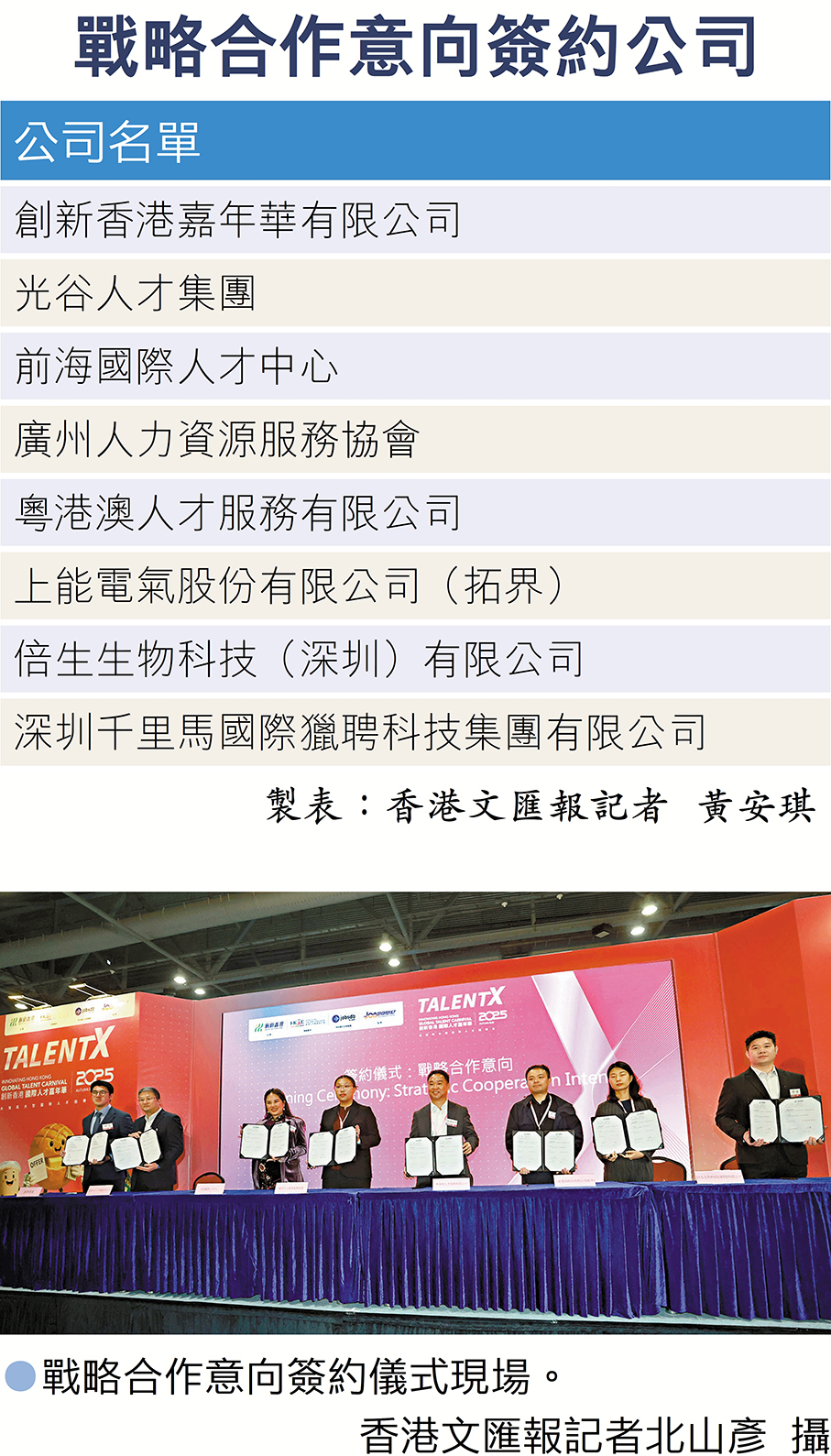 另外,本次活動還進行戰略合作簽約儀式,簽約者包括創新香港嘉年華有限公司、光谷人才集團、前海國際人才中心、廣州人力資源服務協會、粵港澳人才服務有限公司、上能電氣股份有限公司(拓界)、倍生生物科技(深圳)有限公司,以及深圳千里馬國際獵聘科技集團有限公司。