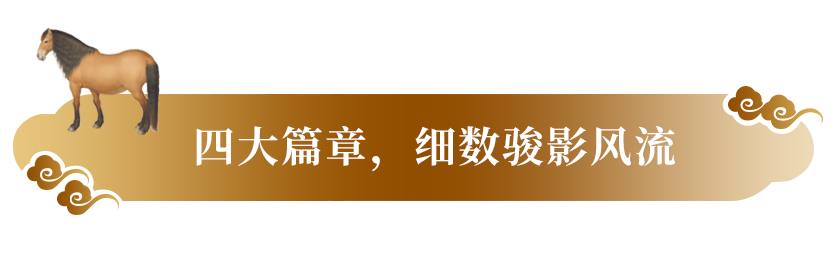 閱覽「驥影故事」篇,滿目皆是名人與名馬的傳世故事。西漢時期,張騫出使西域,不僅開闢了絲綢之路,更為漢武帝覓得「天馬」——汗血寶馬。而三國時期的赤兔馬,以其忠勇護主成就關羽「過五關,斬六將」的傳奇,成為千古傳頌的名馬典範。