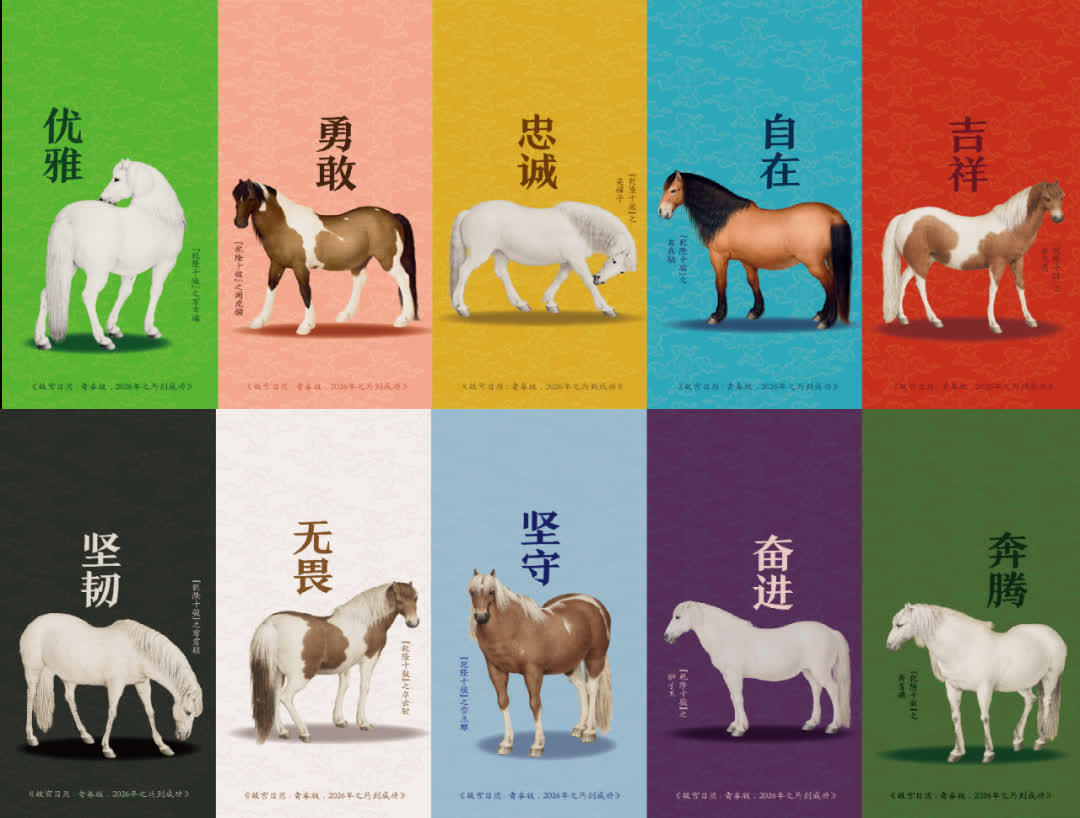 《故宮日曆》青春版附贈10張「乾隆十駿」主題文物手機壁紙,購買日曆即可掃碼領取,讓良驥的優秀品格和「馬到成功」的日常祝福融入你的2026年。
