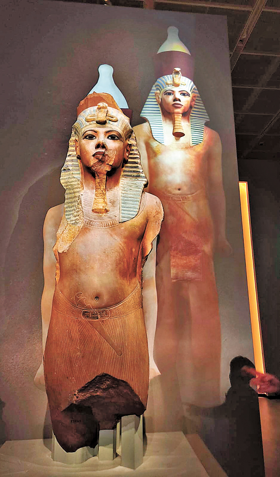 場中最引人注目的是五官柔和以寫實方式展現的圖坦卡門巨像,他9歲登基,十多歲便不知原因離世了。