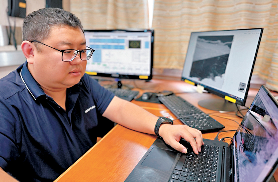一組數據顯示,自2002年第一顆自主海洋衛星升空以來,中國已成功發射海洋水色、海洋動力環境、海洋監視監測三個系列共14顆海洋衛星,目前11顆在軌運行,構建了高精度、定量化、高重訪,覆蓋全球大洋、極地與中國管轄海域的業務化觀測體系。中心極地遙感監測部主任石立堅介紹,目前,團隊正安排衛星對中山站站區和周邊海冰分布情況加密觀測,為「雪龍」兄弟尋找更多破冰潛在路徑。