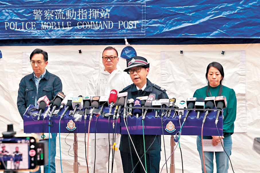 警方災難遇害者辨認組(DVIU)逾600人,昨日繼續在大埔宏福苑火場多幢樓宇搜索,至下午4時已分別在火場單位內、梯間、走廊或天台等多處發現18具遺體,當中大部分遺體是在首先被波及的宏泰閣內發現,令今次事故的罹難人數增至146人,79人受傷。警務處新界北總區指揮官林敏嫻表示,希望盡快確認遇難者的身份,以縮短家屬煎熬的等待,「我們每一刻都在跟時間競賽,絕對不會鬆懈,以最高效率推進程序,希望市民能盡快可以返回處所作善後工作。」房屋署視察後,確認所有樓宇的整體結構沒有即時危險,但個別樓宇需安排緊急鞏固。 ●香港文匯報記者 蕭景源